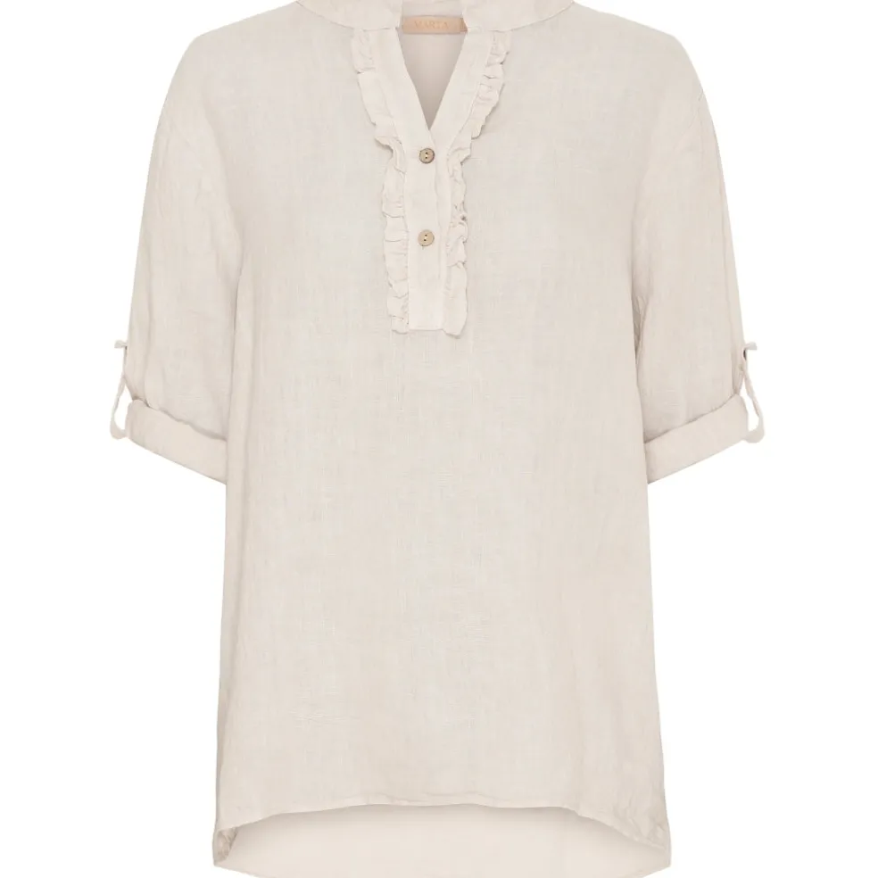 Sød hør bluse fra Marta Du Cháteau med knapper foran samt flæse detalje.