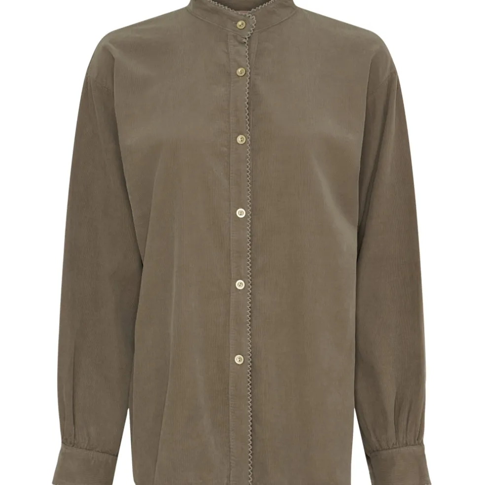 Feminin skjorte med detaljer som høj hals og knapper langs fronten. Kan styles med hvad end man har i klædeskabet og er super fin.