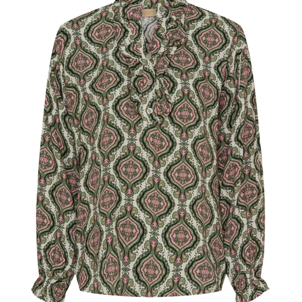 Smuk printet skjorte fra Marta Du Cháteau med knapper foran og elastik i ærmerne. Ideel både til hverdagsbrug og finere brug.