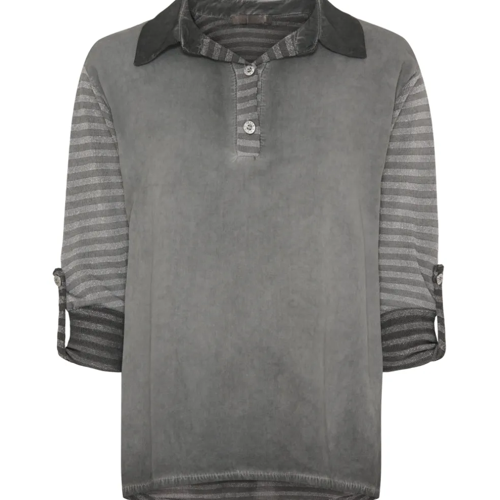 Smart bluse med glimmerdetaljer og ærmer der kan foldes op.