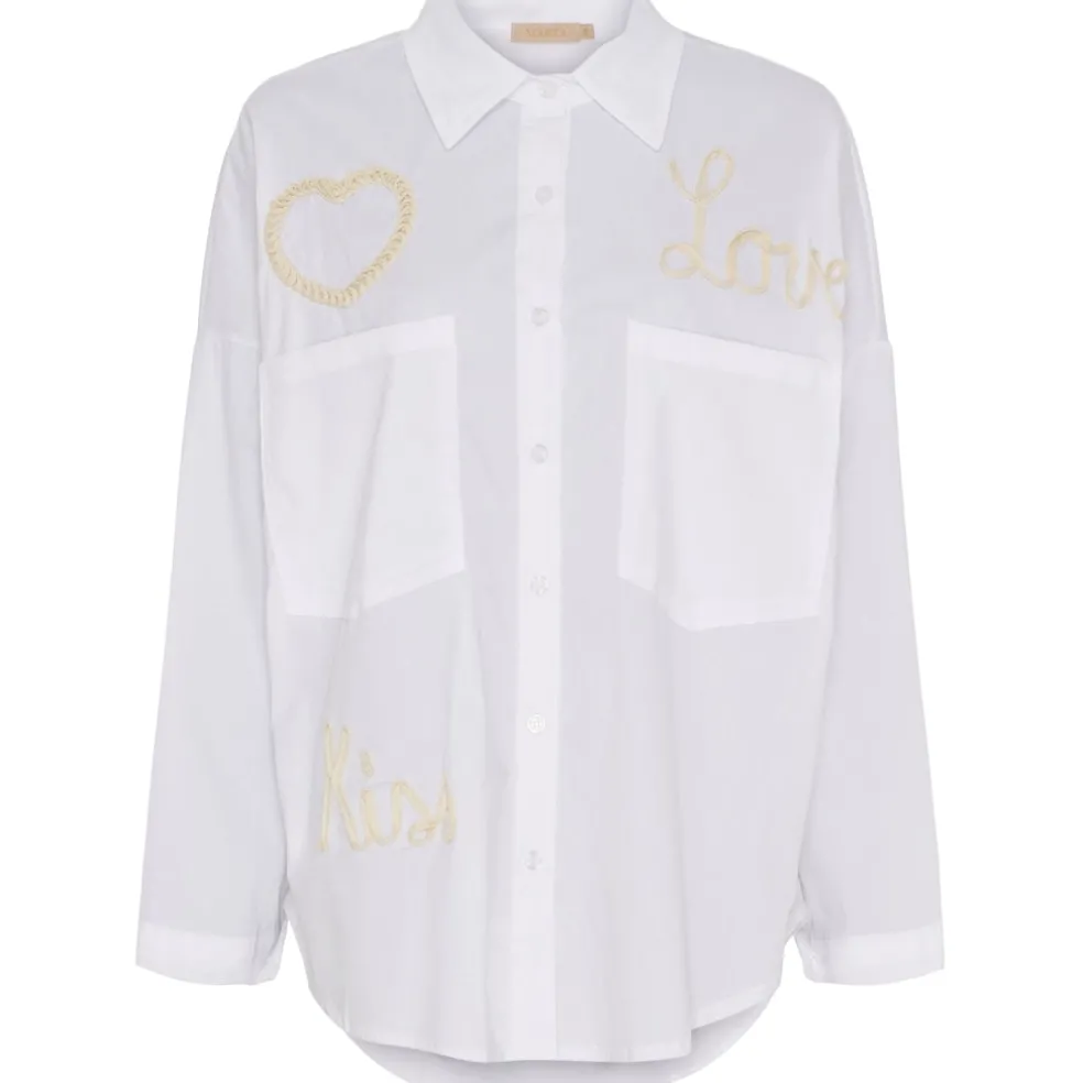 Smukkeste skjorte fra Marta Du Château med brystlommer, krave og cool detaljer. Strikken kan både bruges til hverdag med jeans og sneakers, og til finere anledninger med et skirt og støvler.