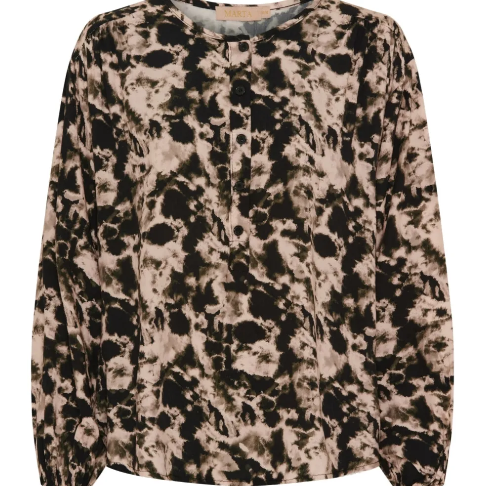 Printet bluse fra Marta Du Cháteau med rund hals, knapper foran samt elastik ved ærmerne.