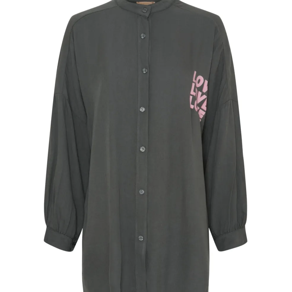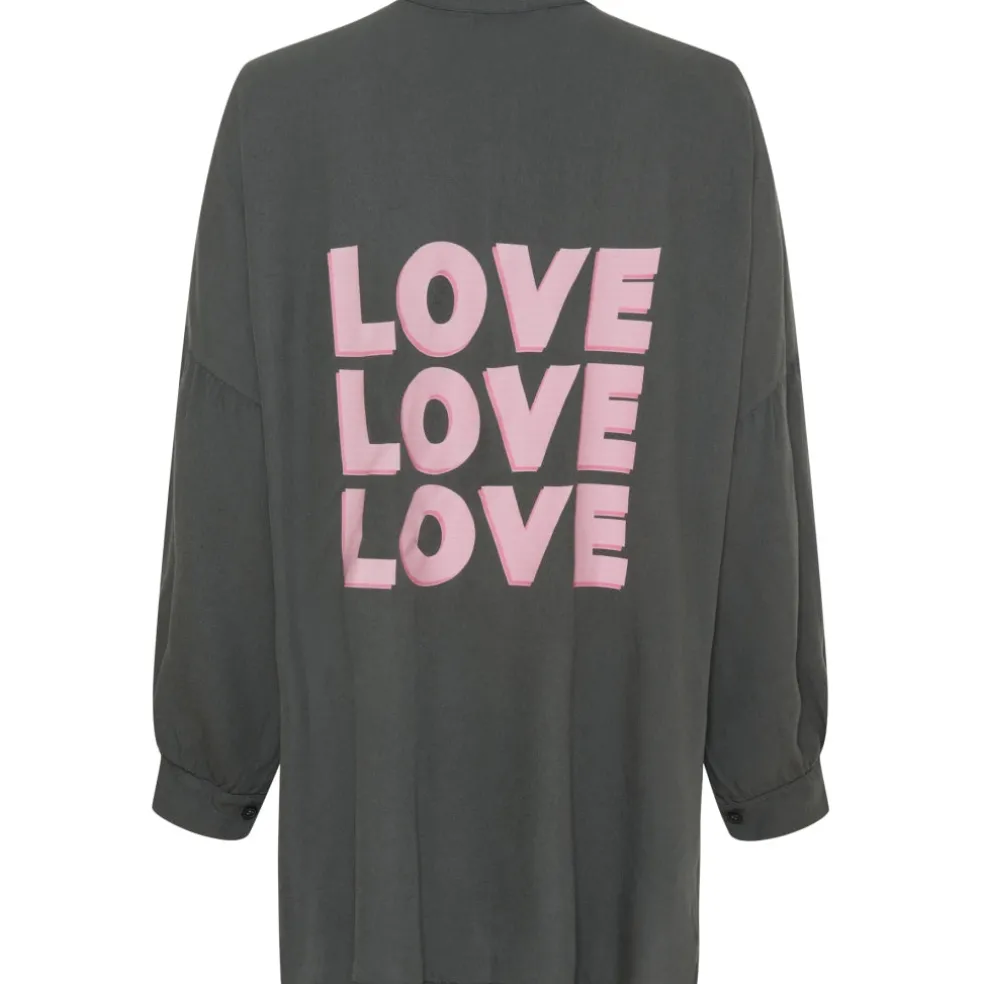 Smuk skjorte med “LOVE” print fra Marta du Château. Skjorten er gennemknappet og har ærmer der kan opsmøges.
