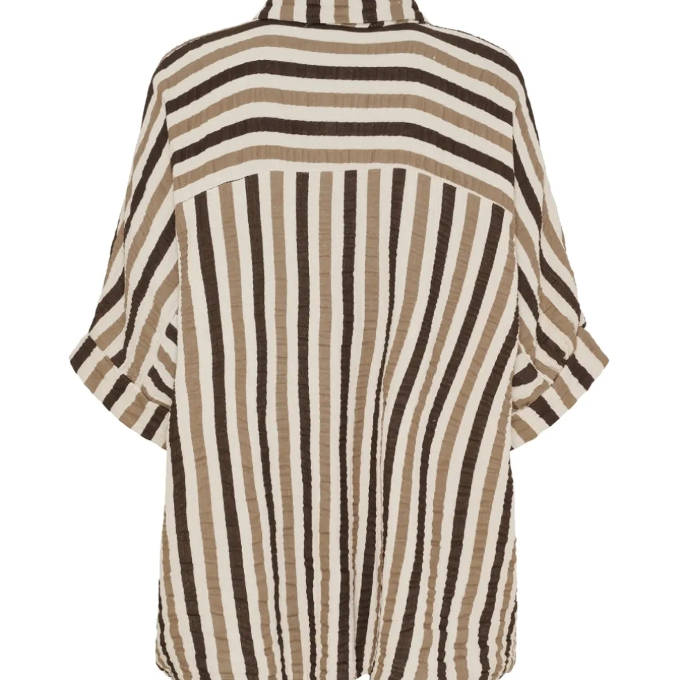 Klassisk skjorte fra Marta Du Château i en flot strib. Skjorten har 3/4 ærmer, gennemgående knapper og har en fin krave. Ideel til hverdag med et par jeans og sneakers.