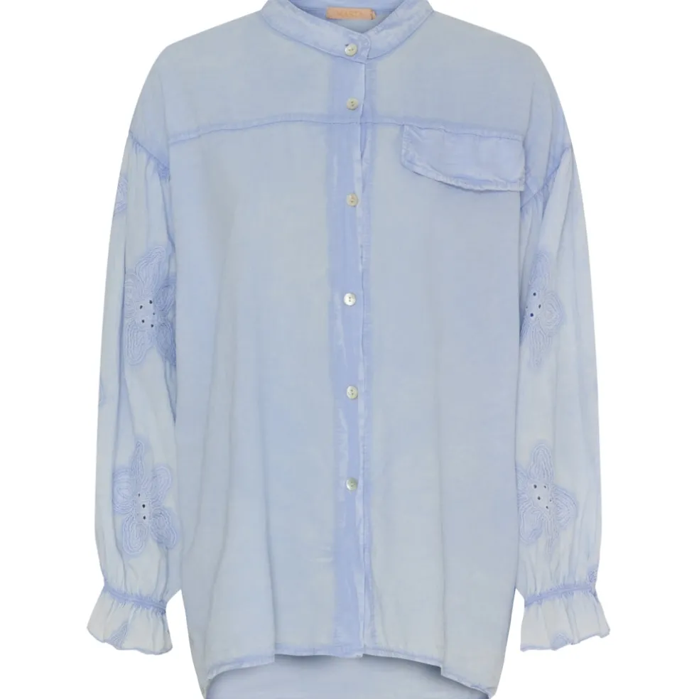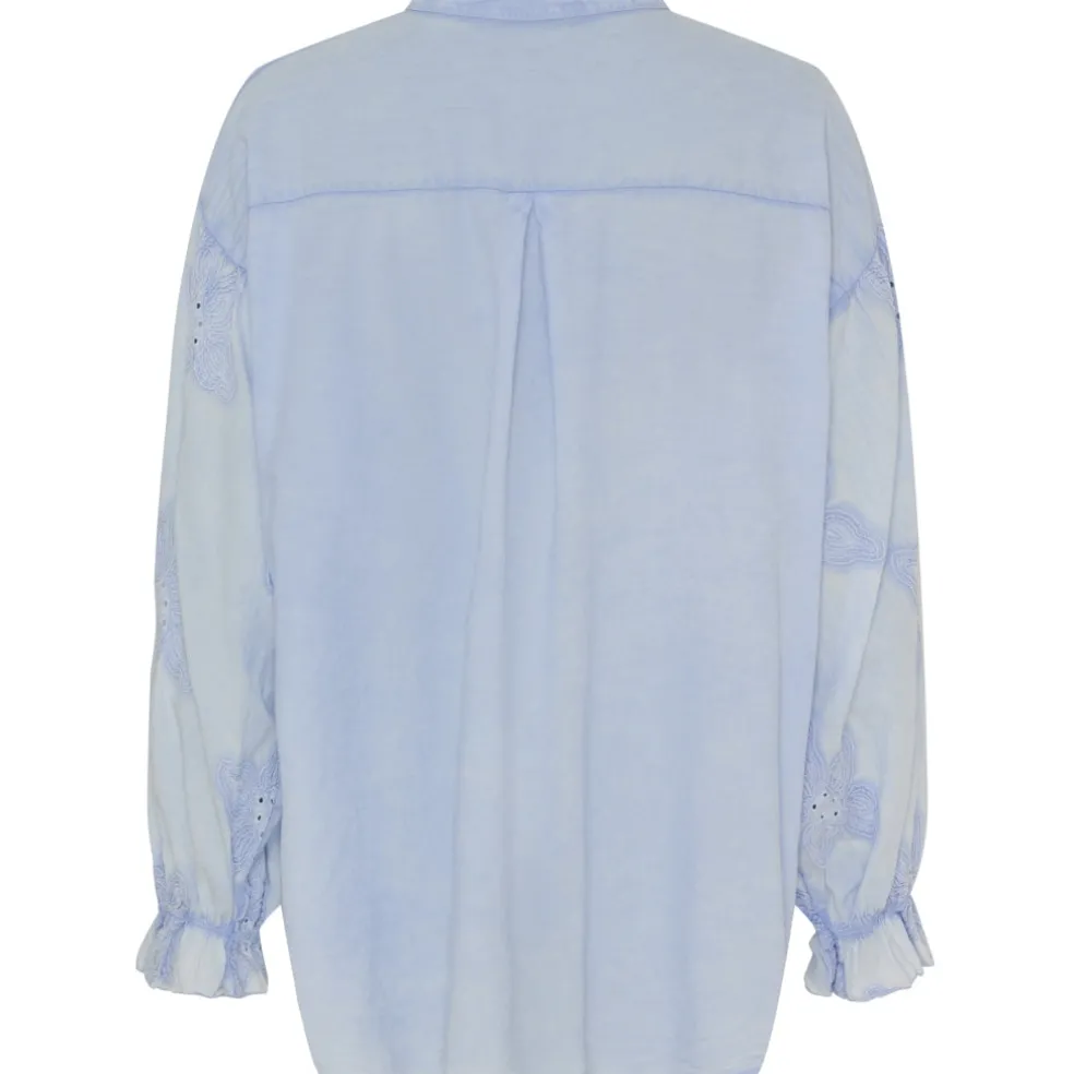 Sød skjorte med blomsterdetaljet på ærmerne.