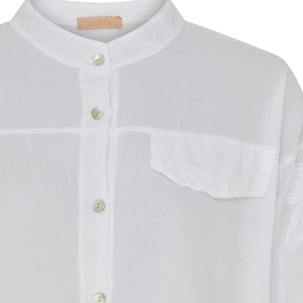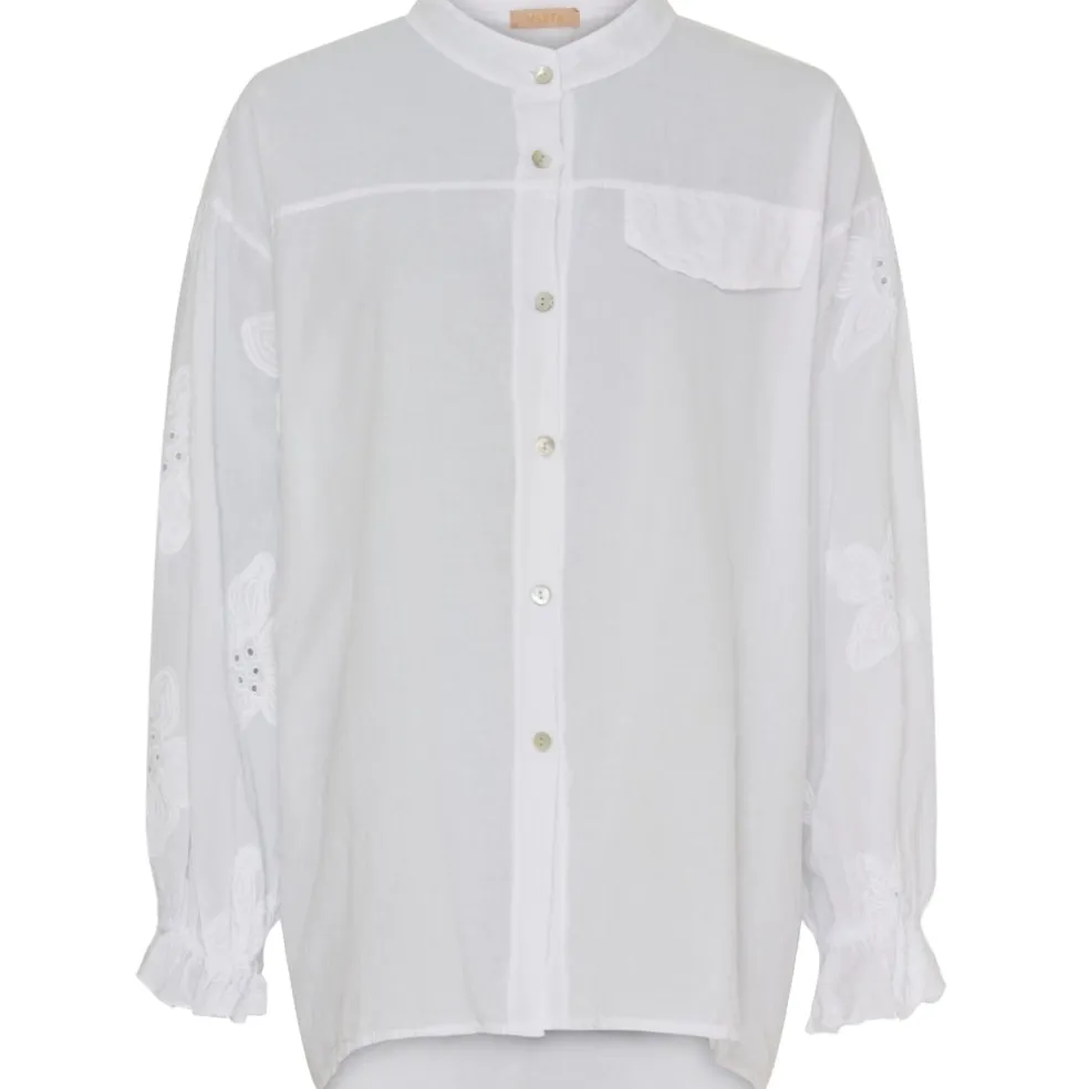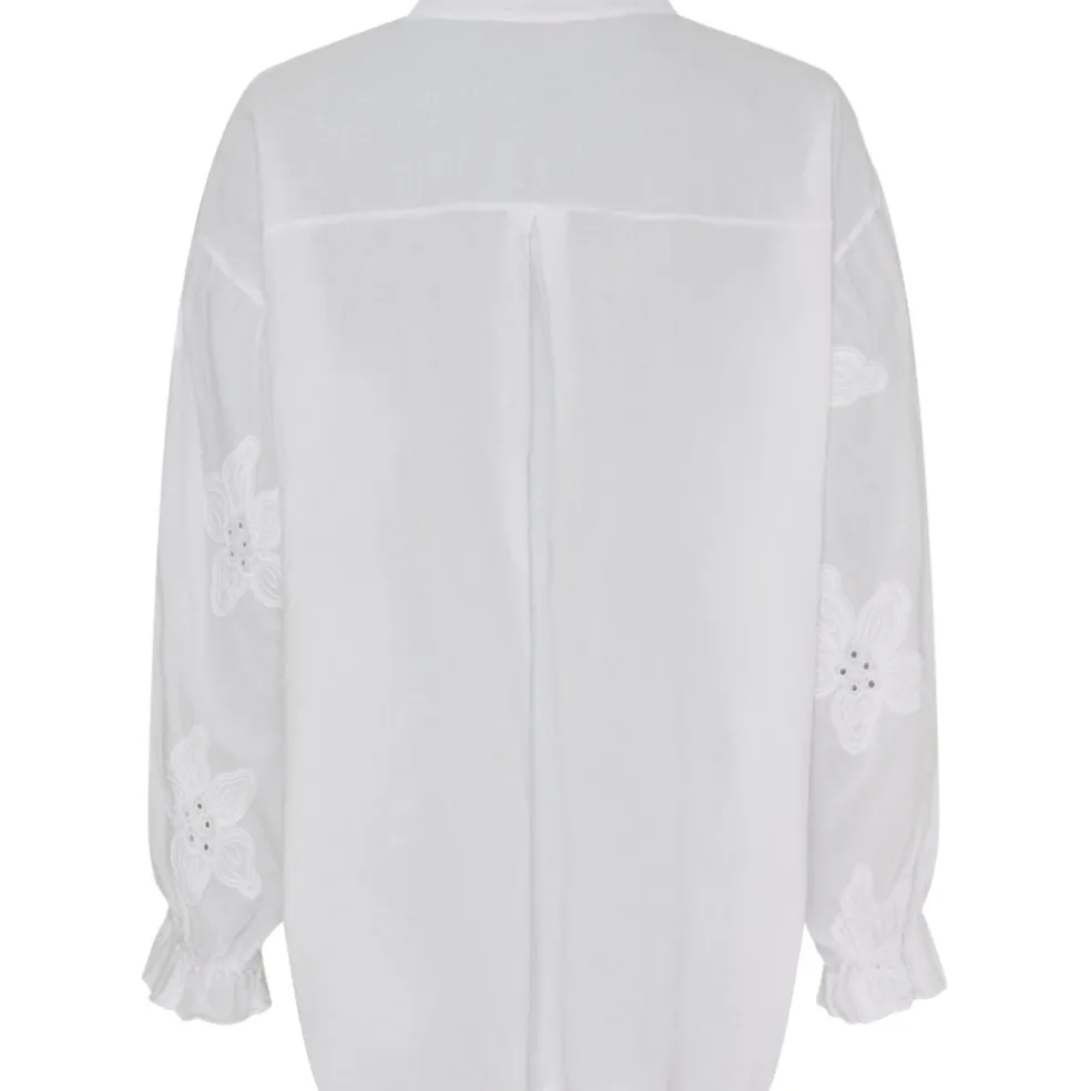 Sød skjorte med blomsterdetaljet på ærmerne.