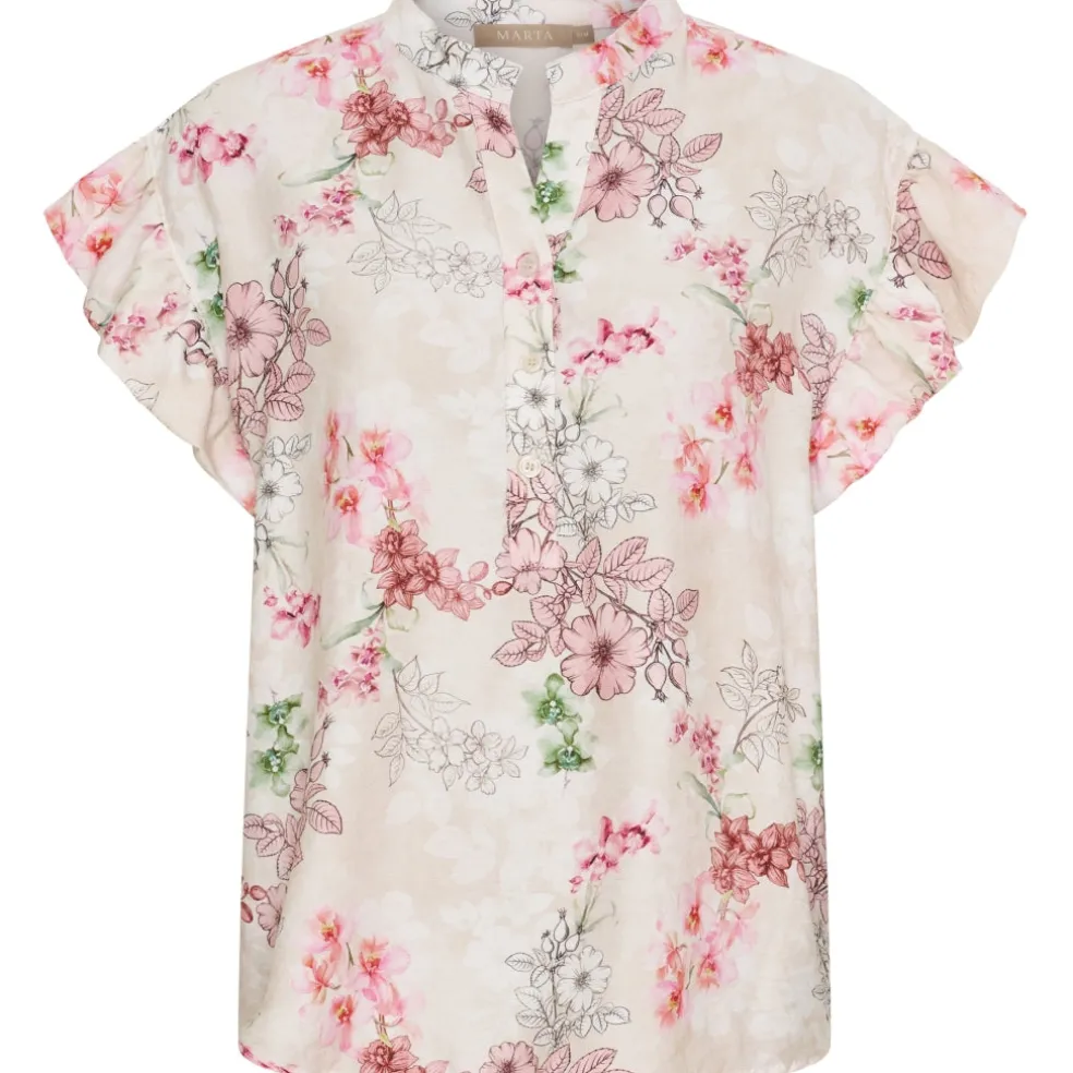 Sød sommertop fra Marta med flæsekant ved ærmerne.