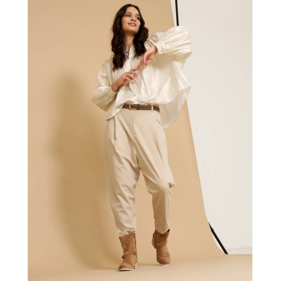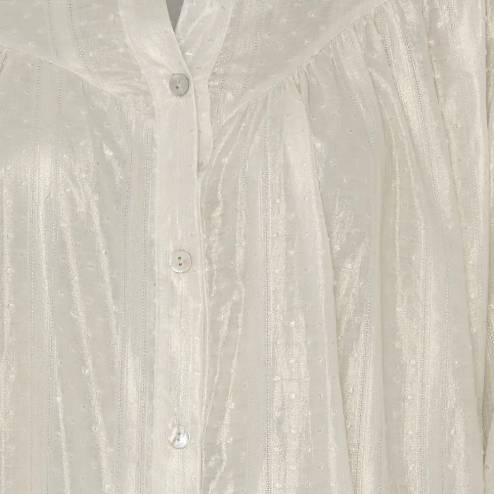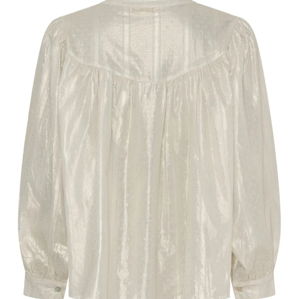 Den fineste skjorte i shiny look. Skjorten kan styles med et par fine blazerbukser, og stiletter for en fin festlook.