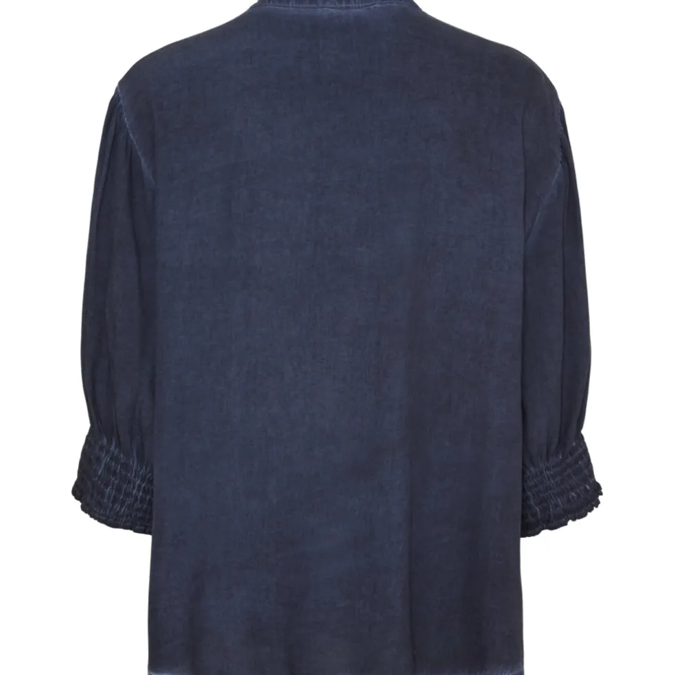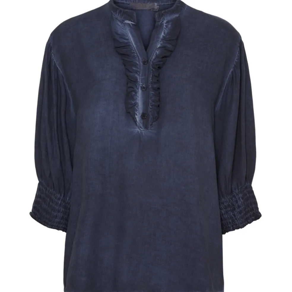 Fin bluse med flæser og smock ved ærmerne. Ideel til hverdag med et par jeans og sneakers til.