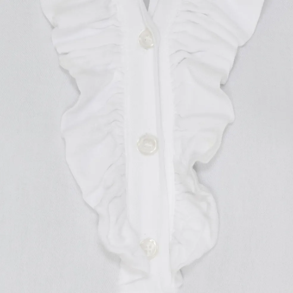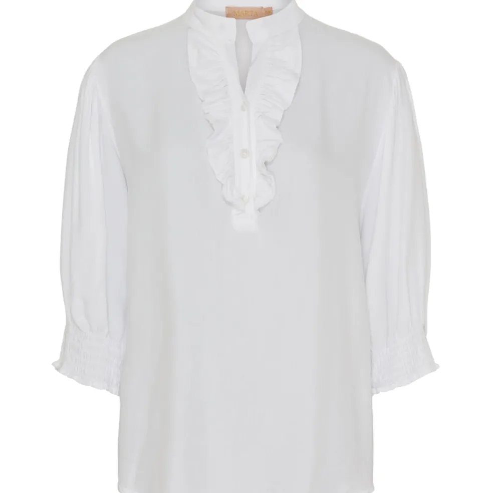 Fin bluse med flæser og smock ved ærmerne. Ideel til hverdag med et par jeans og sneakers til.