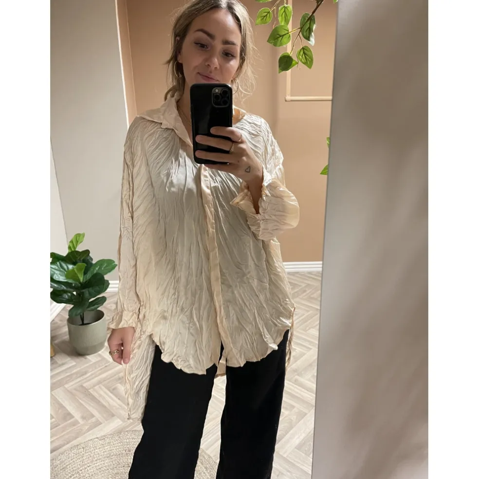 Smuk skjorte fra Marta Du Chateau i krøllet satin look. Perfekt at bruge både til hverdag og fest.
