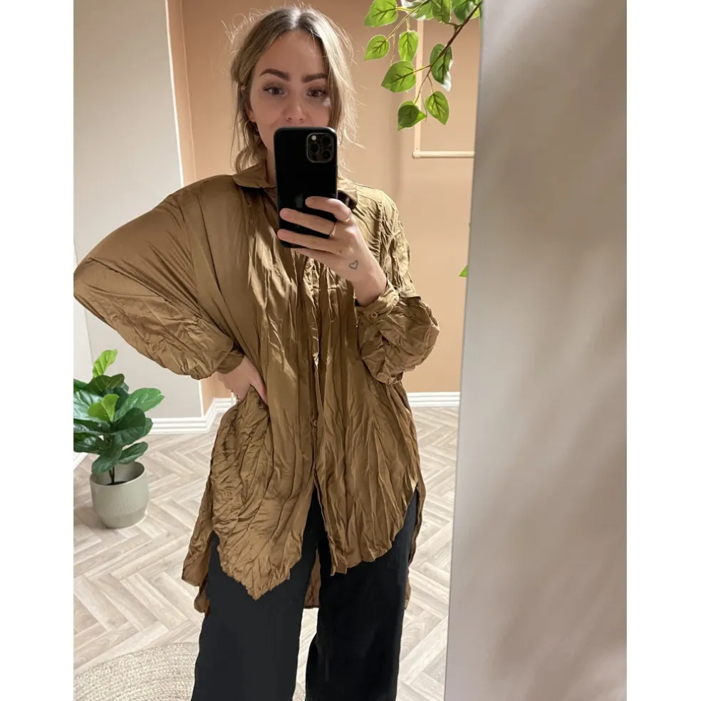 Smuk skjorte fra Marta Du Chateau i krøllet satin look. Perfekt at bruge både til hverdag og fest.