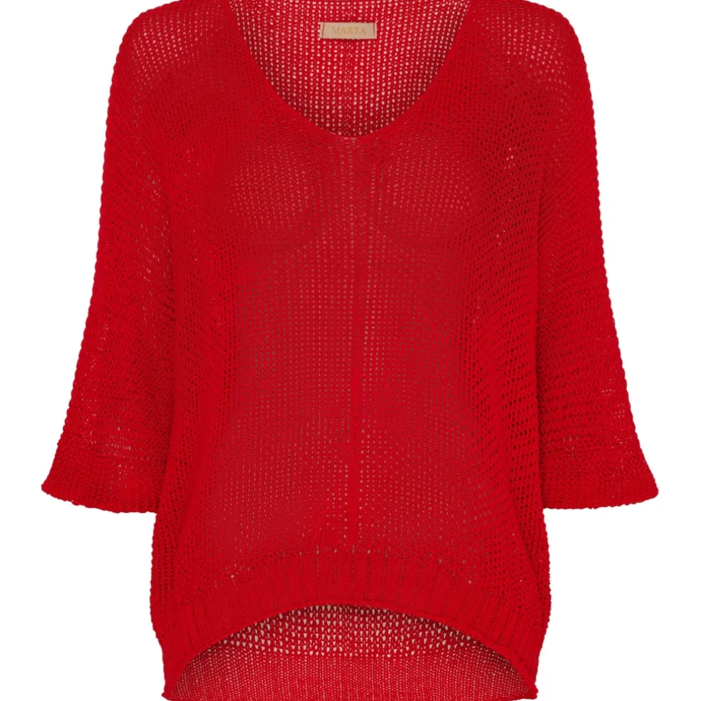 Super fin strik med 3/4 ærmer fra Marta. Strikken er rundhalset og har loose fit ærmer, og kan fint styles med en basis top under.