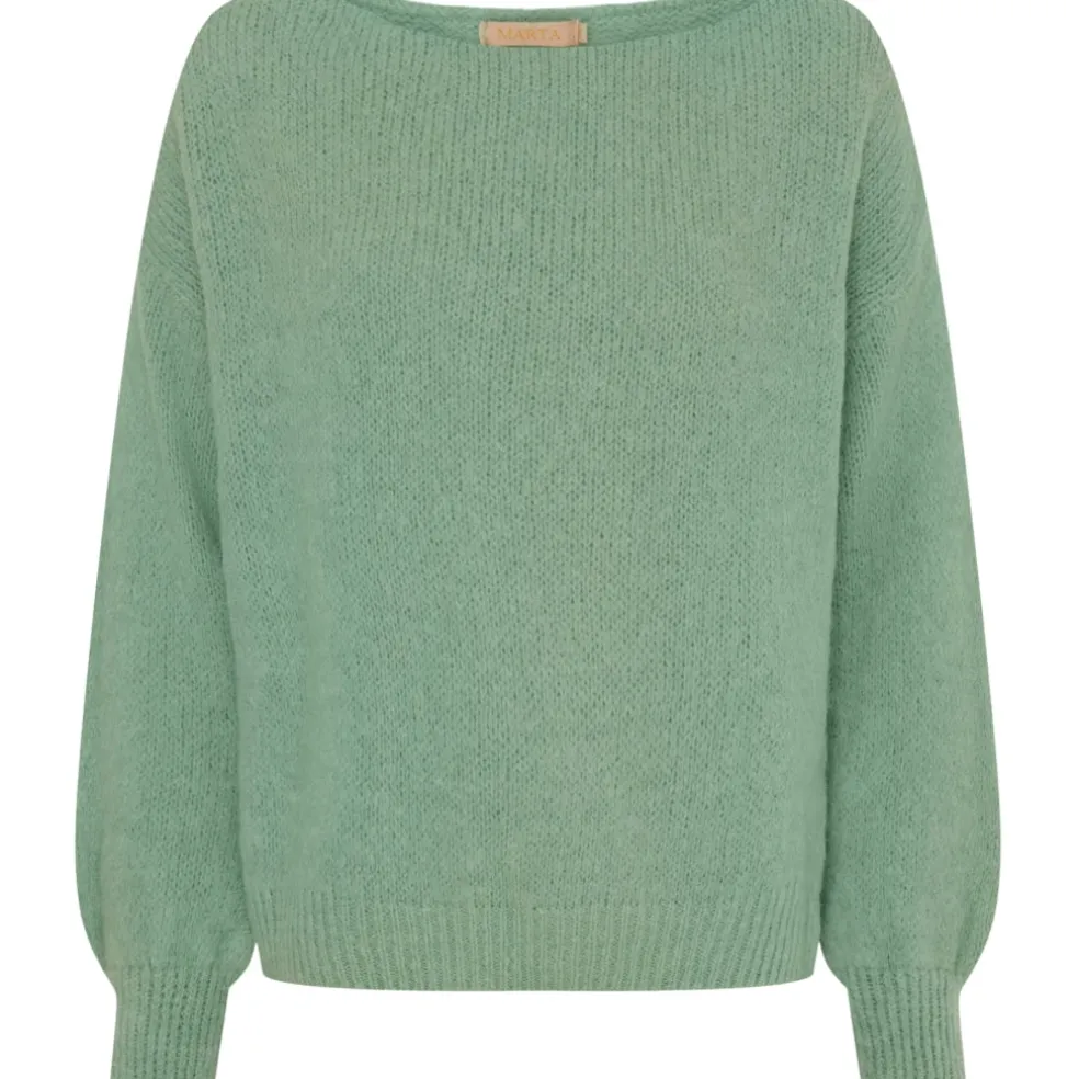 Smuk striktrøje fra Marta du Château med bådhals og ballonærmer. Fungerer super fint til hverdag med et par jeans og sneakers.