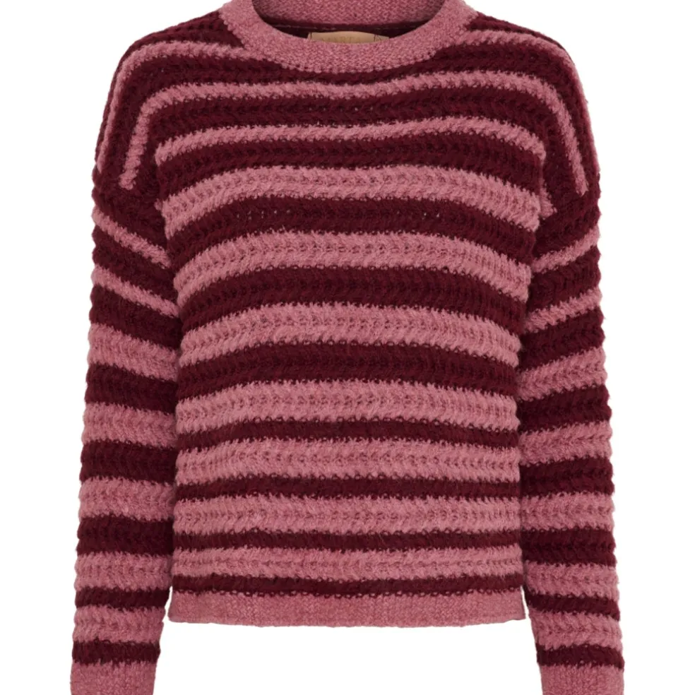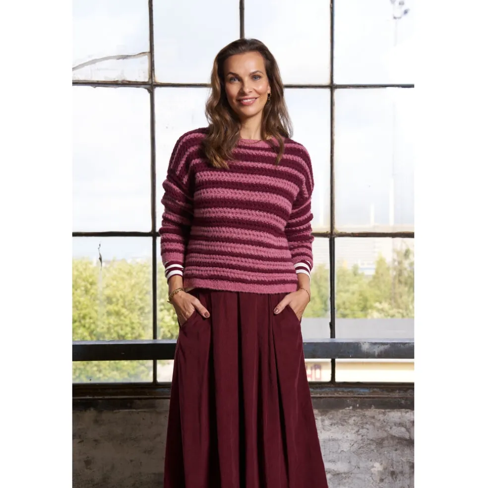Fineste stribet striktrøje fra Marta du Château i en lækker, blød kvalitet. Den er helt perfekt til både hverdagsbrug og mere afslappede anledninger.