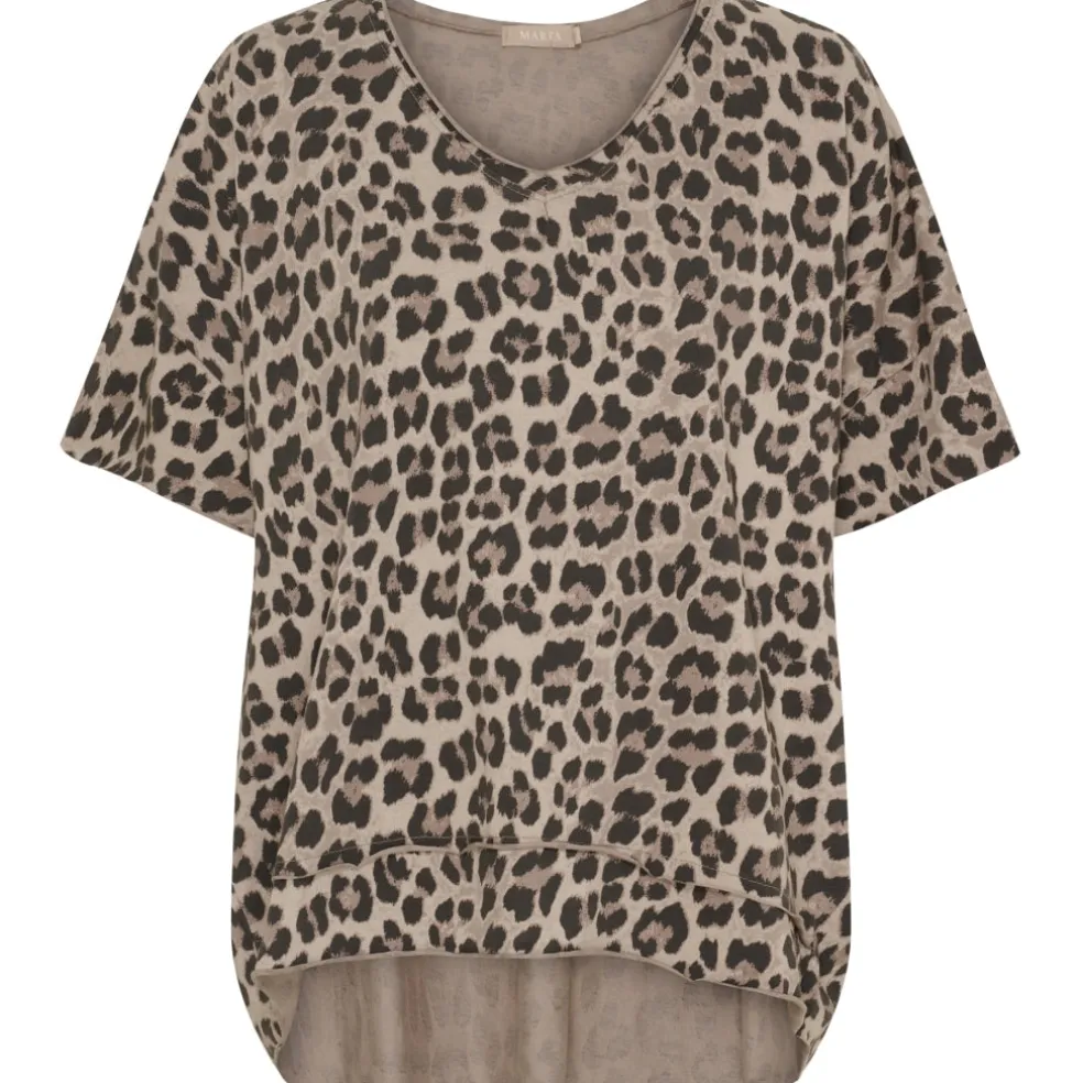Smart t-shirt fra Marta Du Château i flot print. Den er med V-udskæring og længere bagtil. Ideel til hverdagsbrug med et par jeans, sneakers eller støvler. Brug den også med en cardigan på de kolde dage.