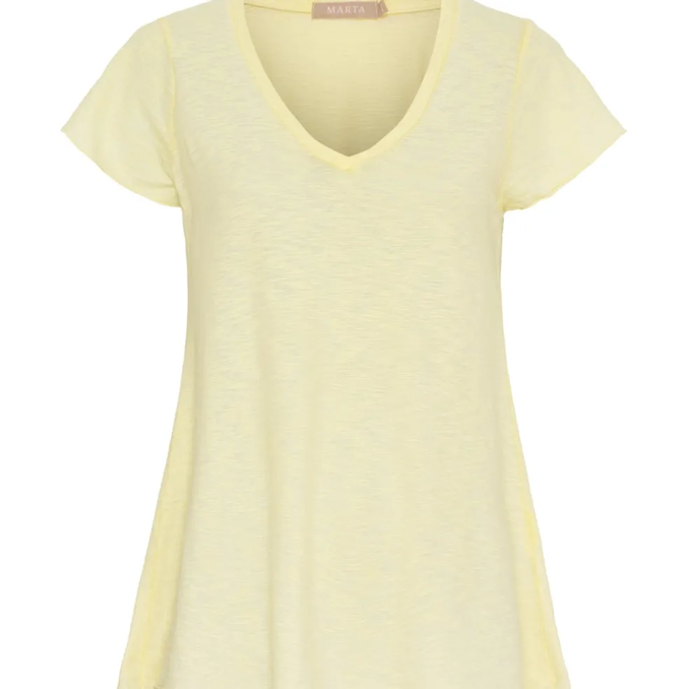 Flot basis t-shirt fra Marta Du Château med V-udskæring. Den er helt perfekt til hverdagsbrug med et par jeans og sneakers eller støvler. Brug den også med en cardigan på de kolde dage.