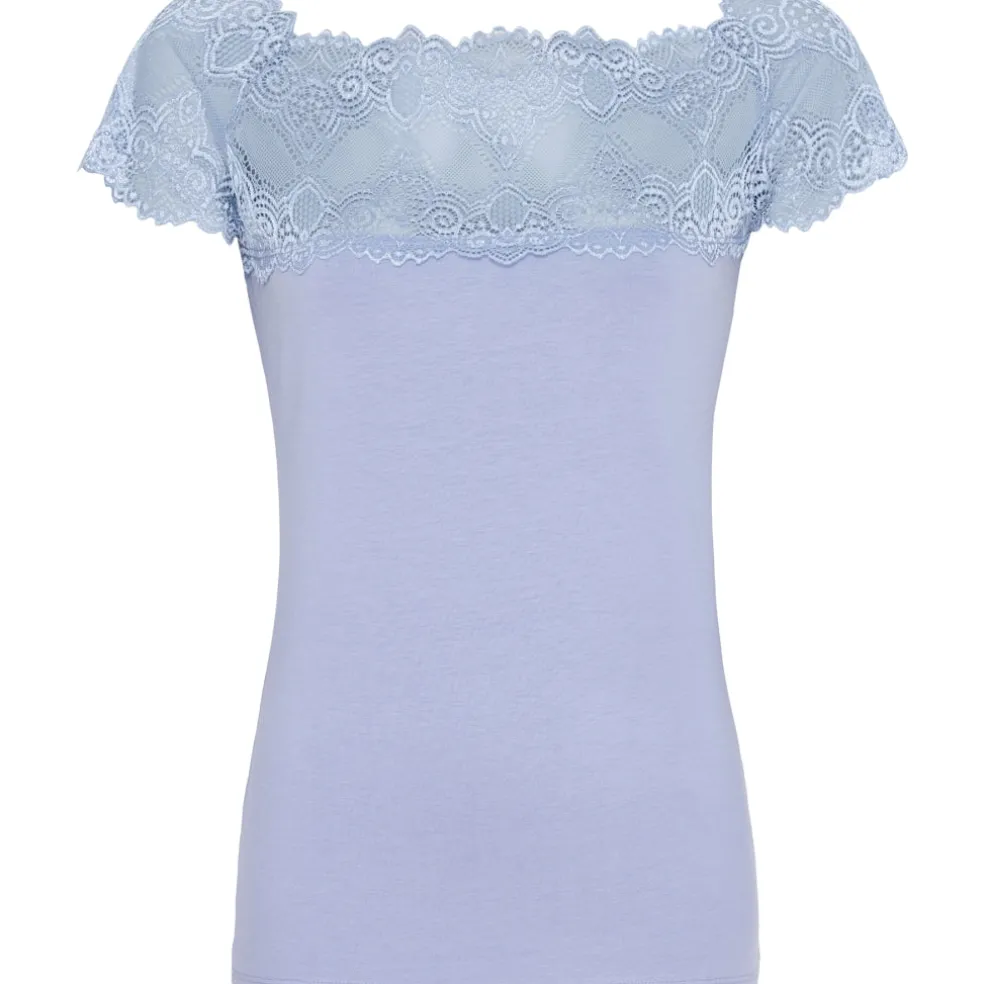 Fin og enkel bluse med korte ærmer og blonder øverst.