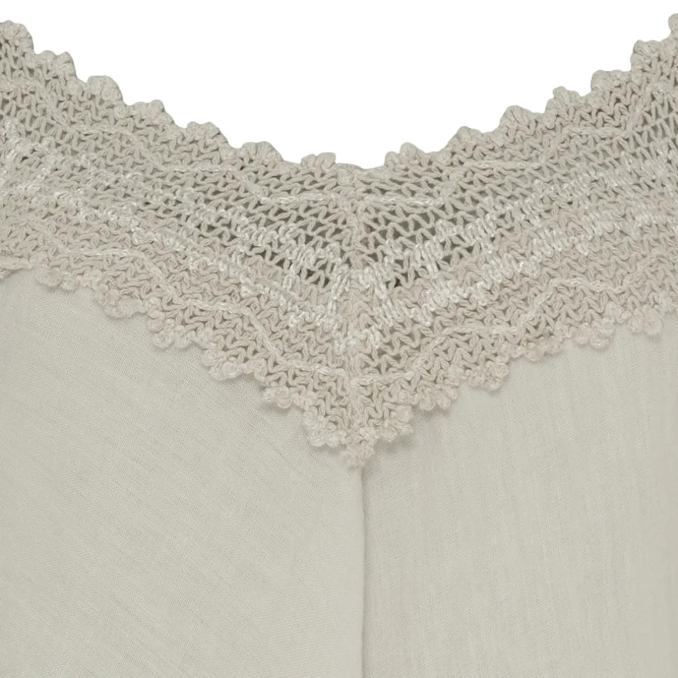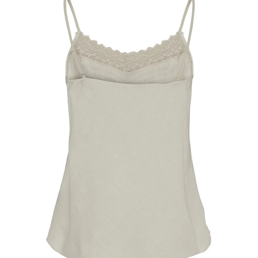 Smuk top i hørblanding med spagettistropper.