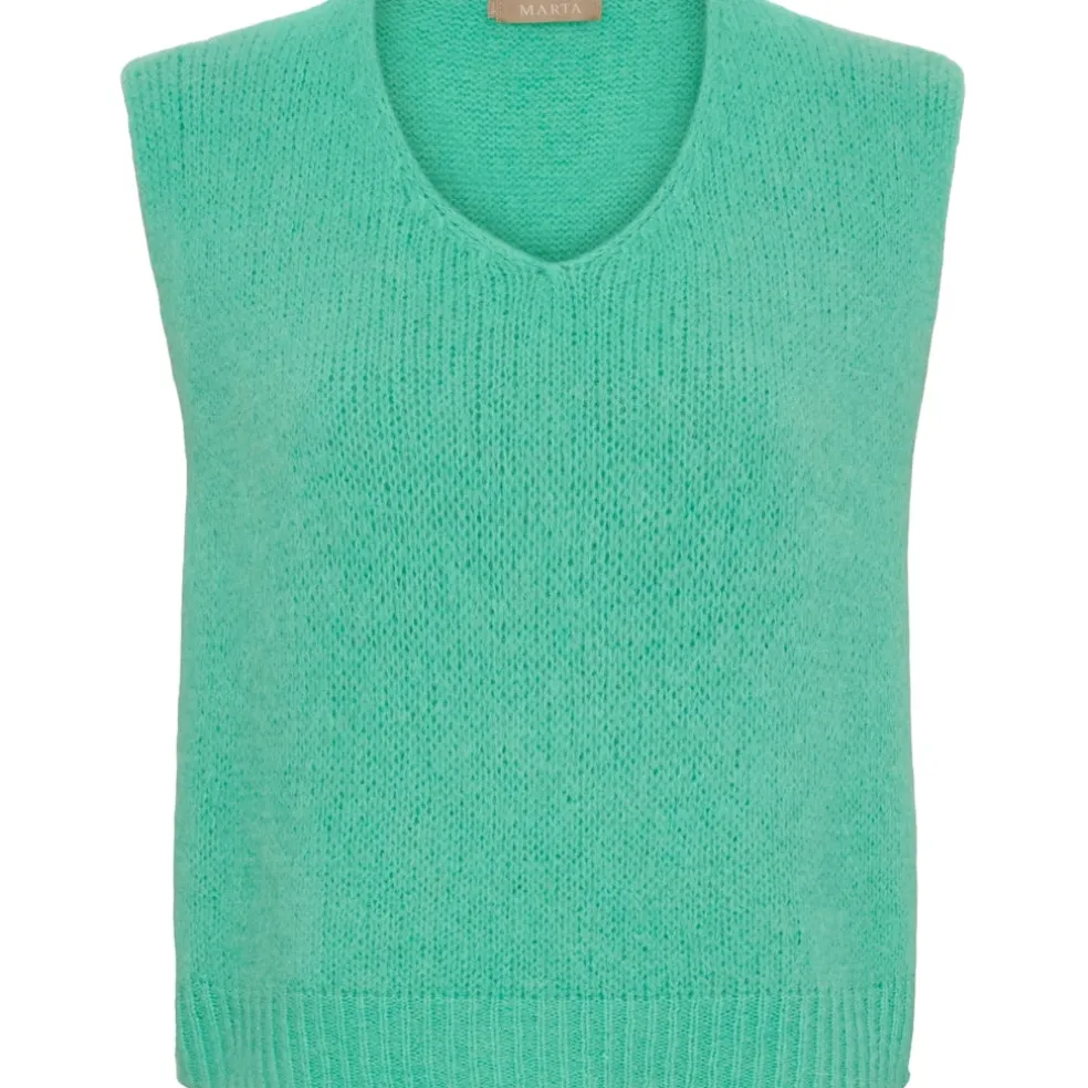 Sej vest med rund hals fra Marta. Vesten kan styles som den er med et par blazerbukser, eller over en langærmet kjole for et sejt lag-på-lag look.