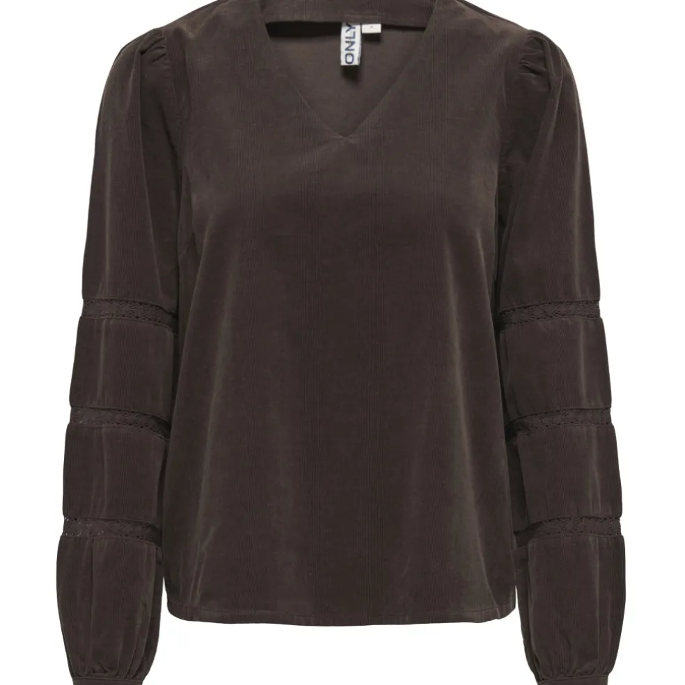 Bluse med regular fit, V-hals og 3/4 ærmer med knapper ved manchetterne og smarte detaljer.
