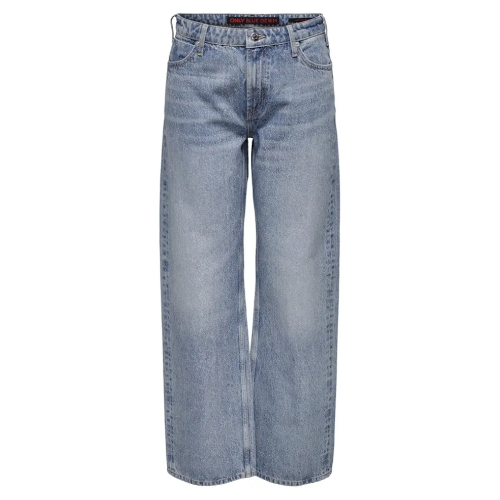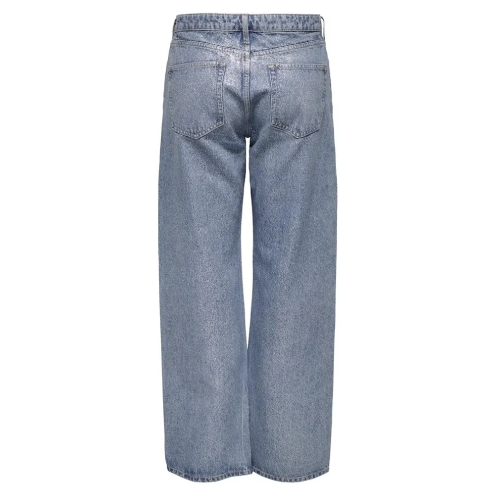 Only glimmerjeans med lige bukseben, sidelommer og baglommer. Jeansene kan styles afslappet med sneakers eller gøres festlige med stiletter.