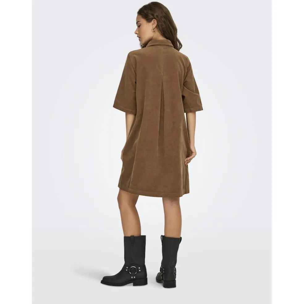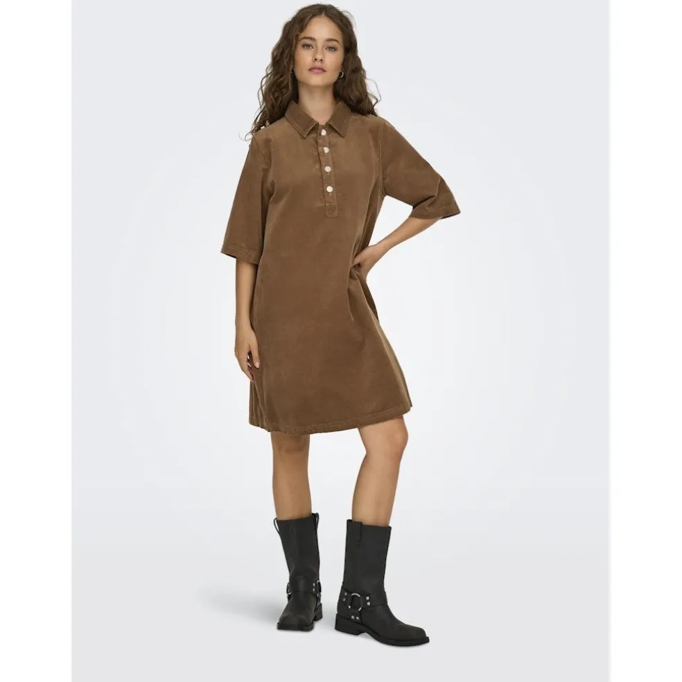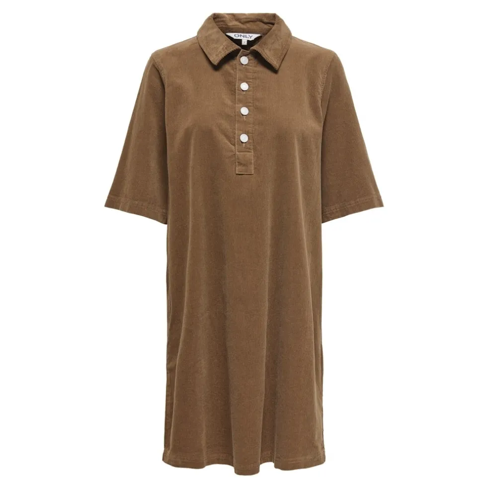 Sej skjorte-kjole i babyfløjl. Den er med krave, knapper ved brystet og 3/4 ærmer. Kan styles som den er eller med en mesh bluse under.