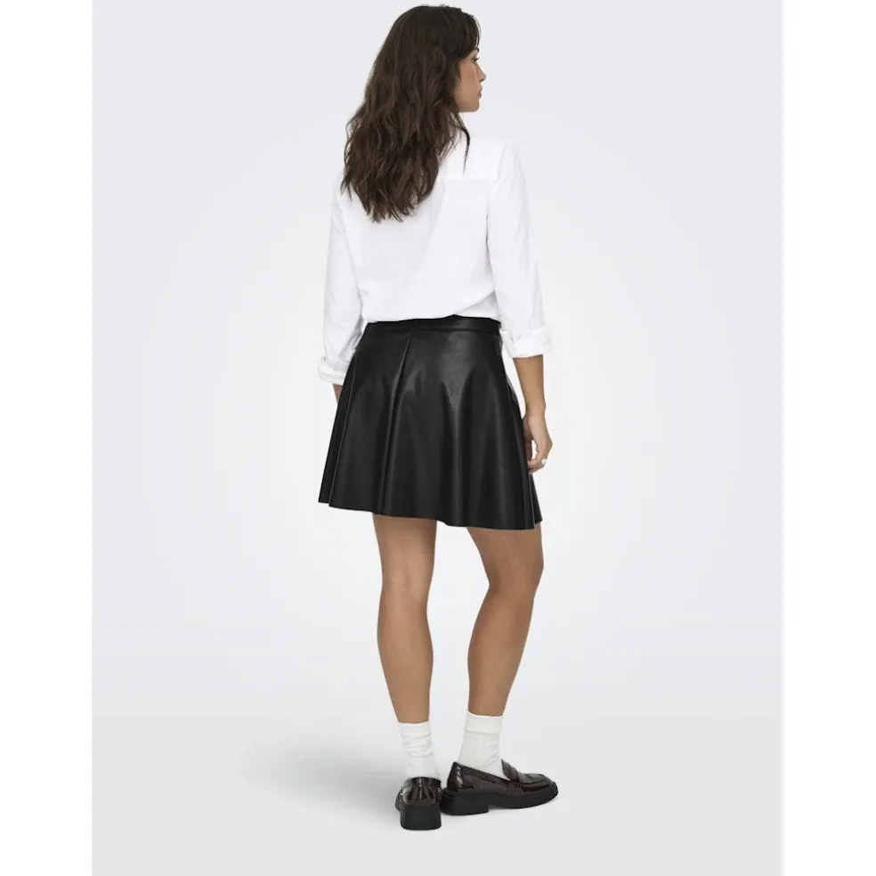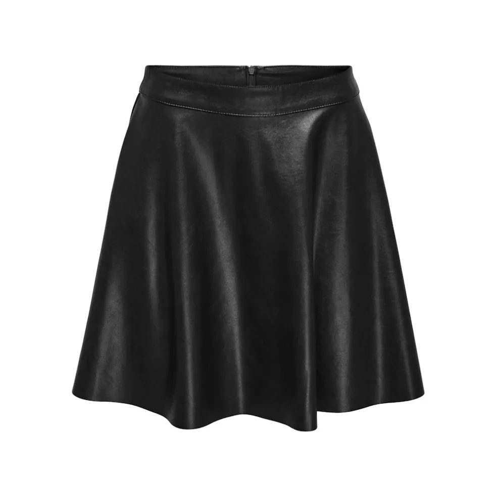 Cool og enkel mini nederdel fra ONLY i imiteret læder. Den har lynlås bagpå. Nederdelen kan styles med en strik og et par støvler for et perfekt og stilfuldt look her til efteråret.