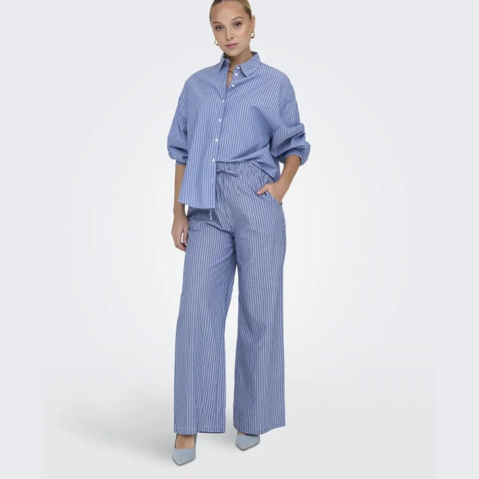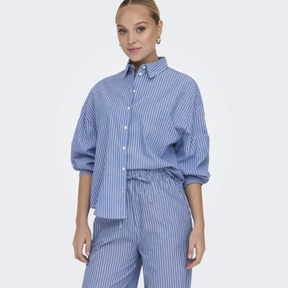 Smuk stribet skjorte med elastik ved håndledet fra Only.