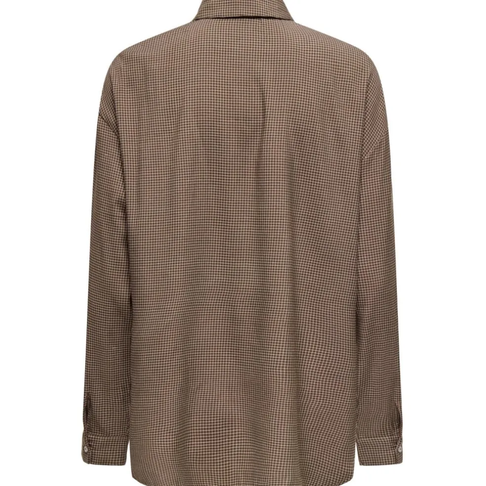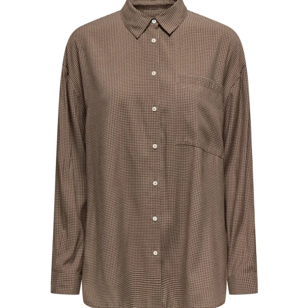 Smart ternet skjorte fra Only. Skjorten er gennemknappet og har en enkelt brystlomme. Size op for et mere baggy og oversized look.