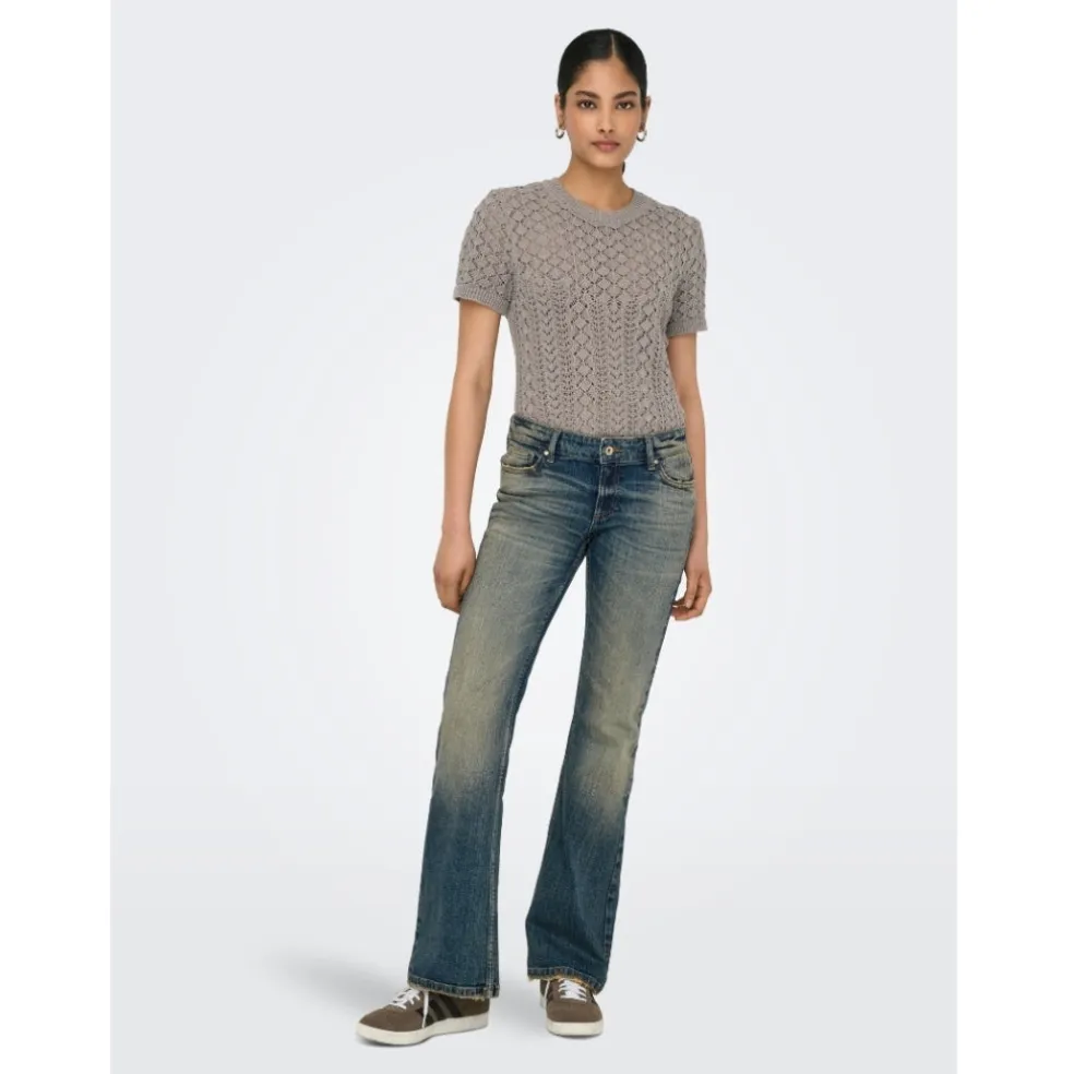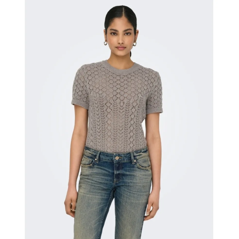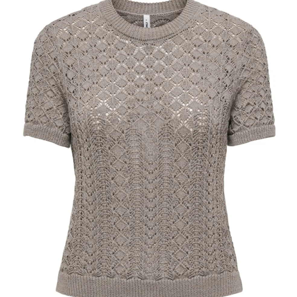 Smuk strik t-shirt fra Only med hulmønster, der gør at den et let gennemsigtig. Style den derfor evt. med en basis top under. Den er super fin og feminin, og kan både bruges til jeans og nederdele.