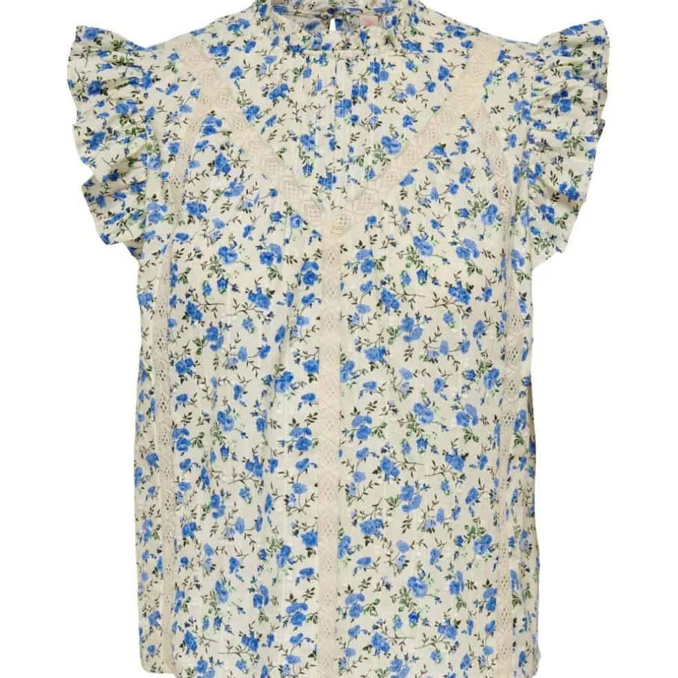 Smuk blomstertop fra Only med flæser. Vildt feminin og elegant, og er helt perfekt til de varme sommerdage.
