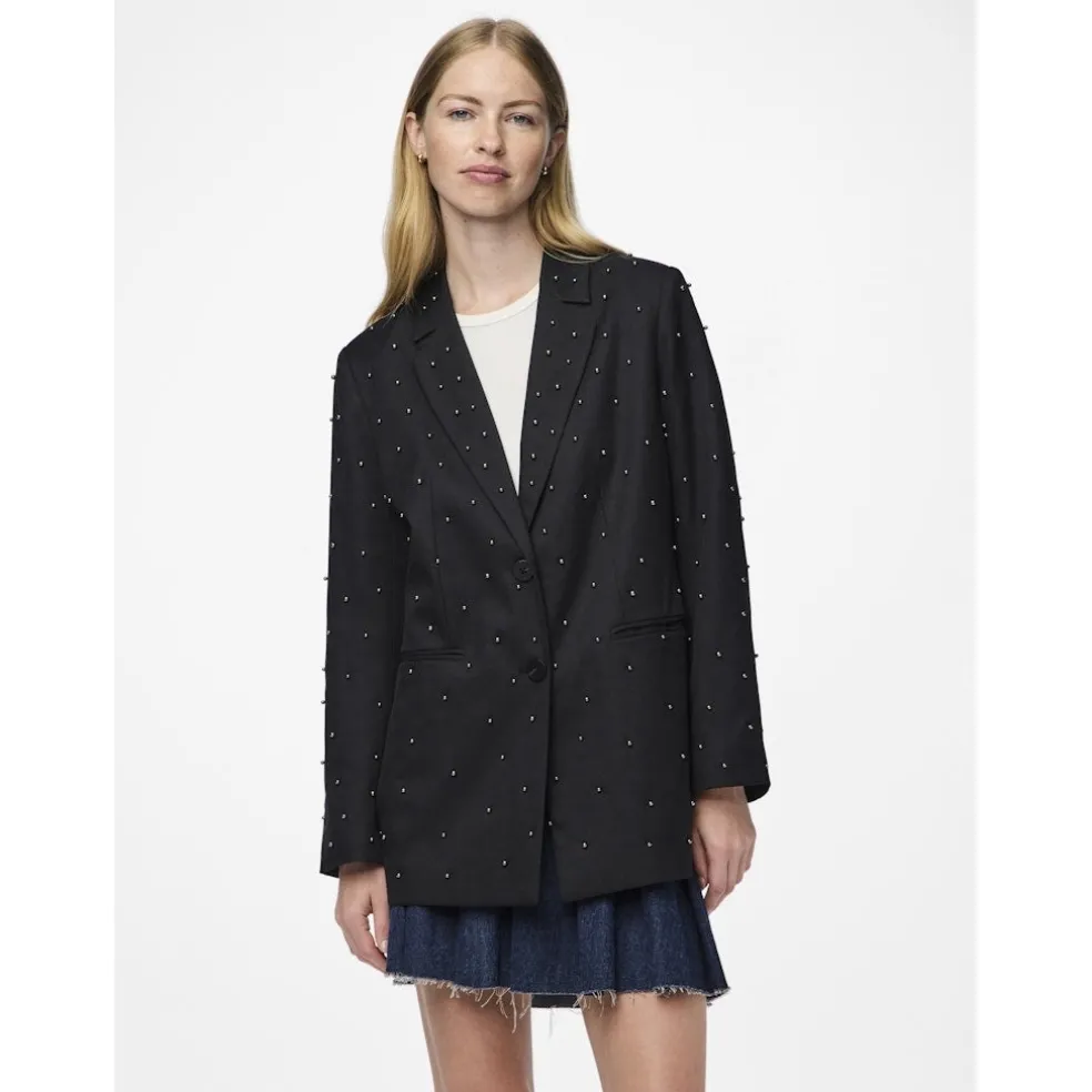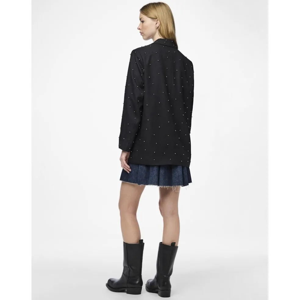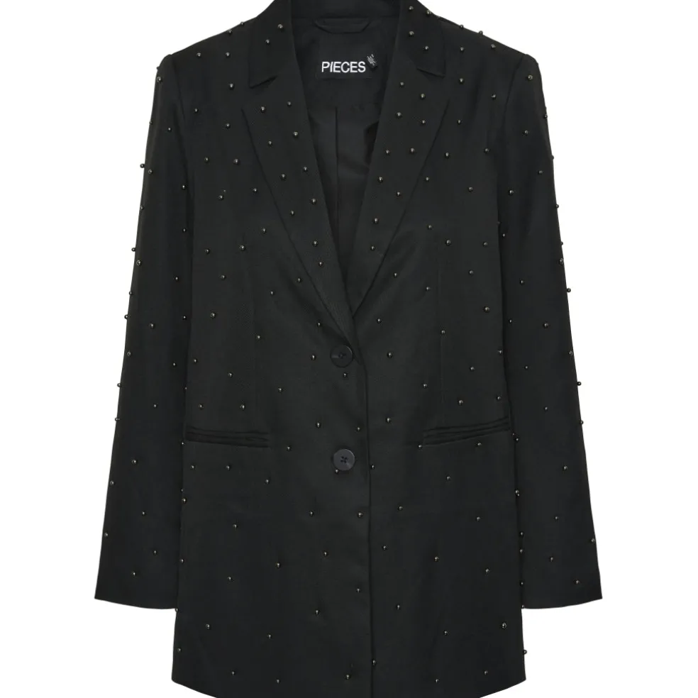 Smart blazer med sorte perler fra Pieces. Blazeren er super festlig og kan styles med bukserne fra samme serie for et komplet, cool look.