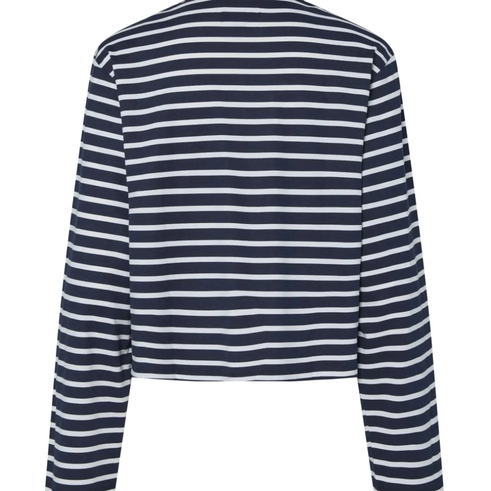 Sød stribet bluse med skulderpuder fra Pieces. Ideel til hverdagsbrug og er super let at style med et par jeans eller habitbukser.