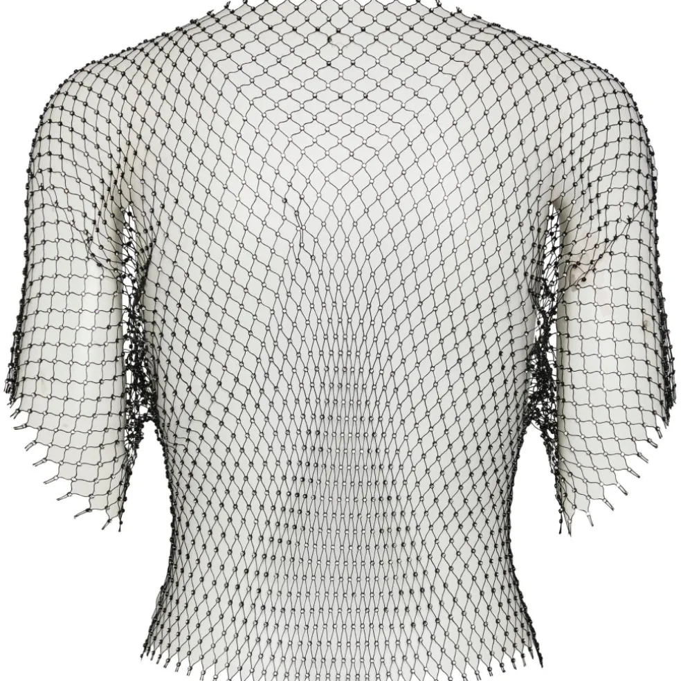 Fin net bluse med sten fra PIECES. Perfekt at style med en top under.