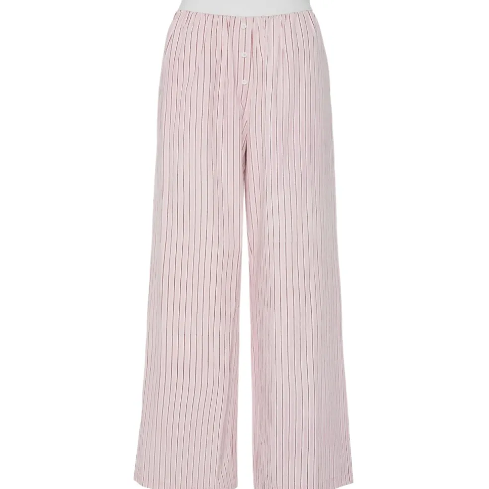 Stribede high waist bukser med brede ben og knapper fra Pieces. Der er elastik i taljen og sofistikerede knapper.