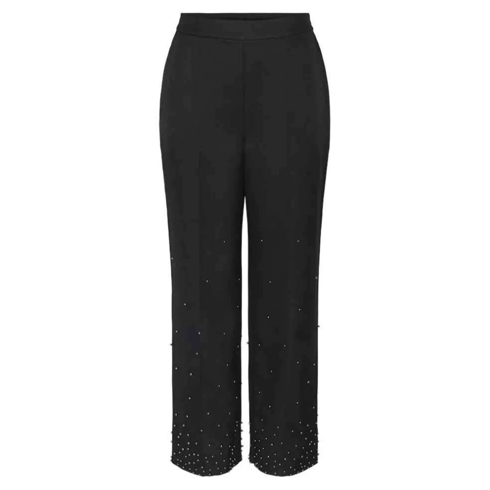 Super smarte bukser med perler forneden fra Pieces. Bukserne er festlige og kan fint styles med en blazer og stiletter til.