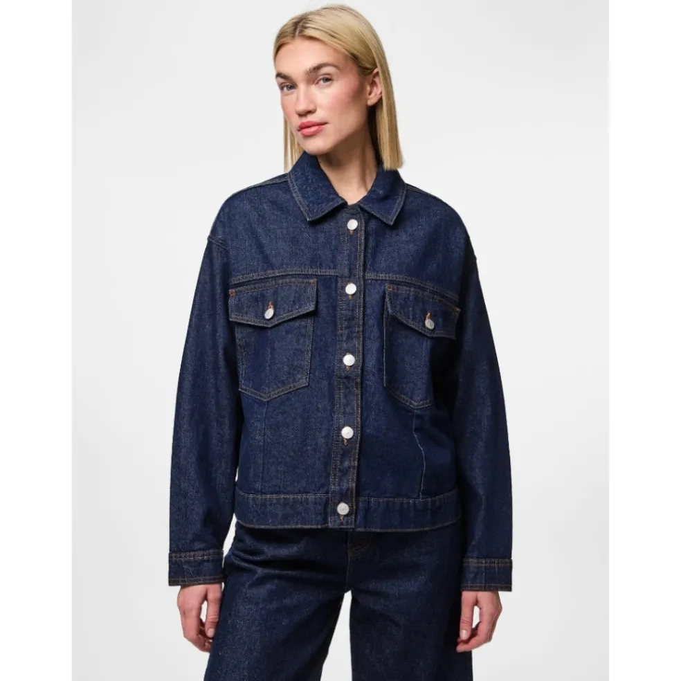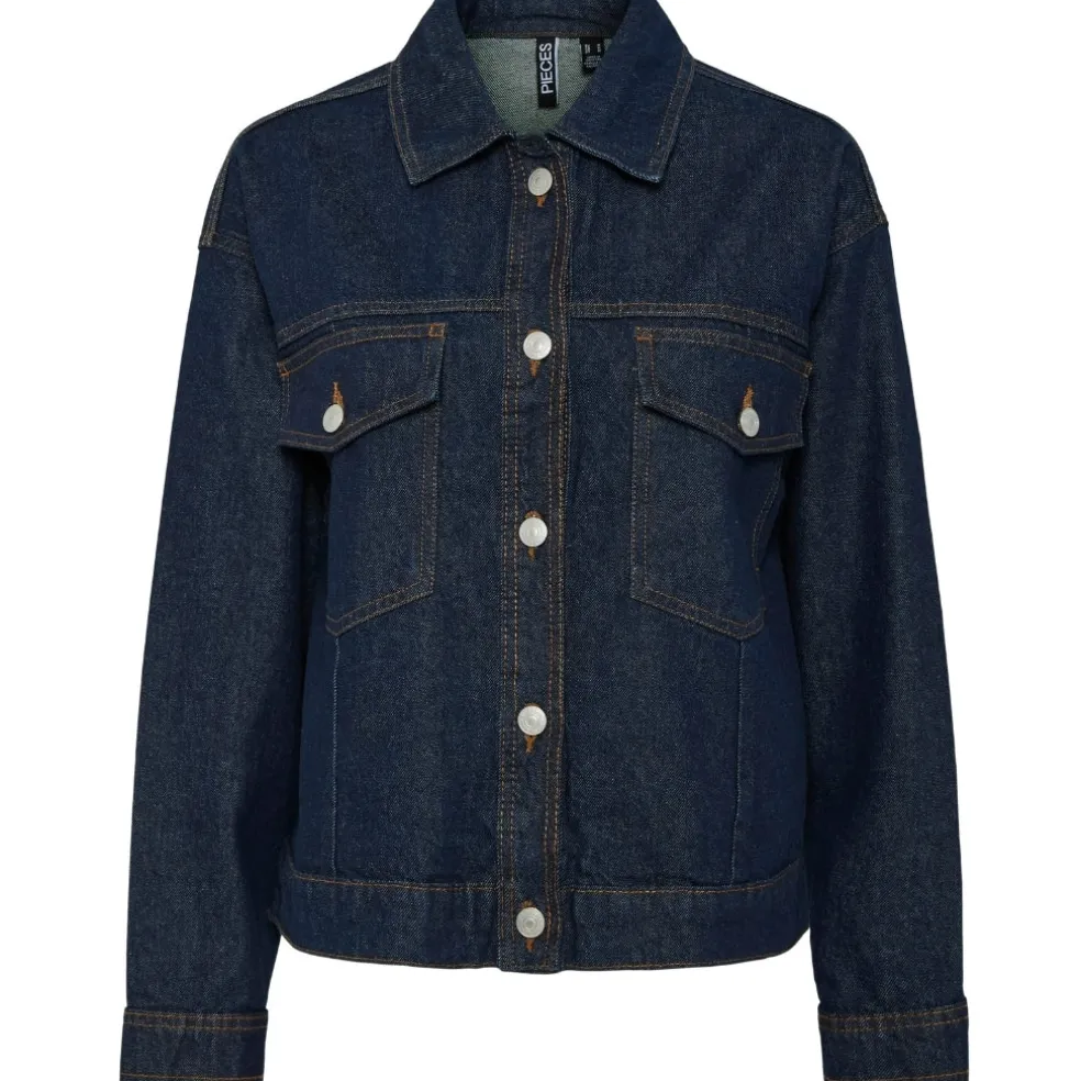 Super cool denimjakke fra Pieces. Jakken er gennemknappet og har brystlommer, og den kan styles med jeans for et fuldt denim-on-denim look. Size op for et mere oversized look.