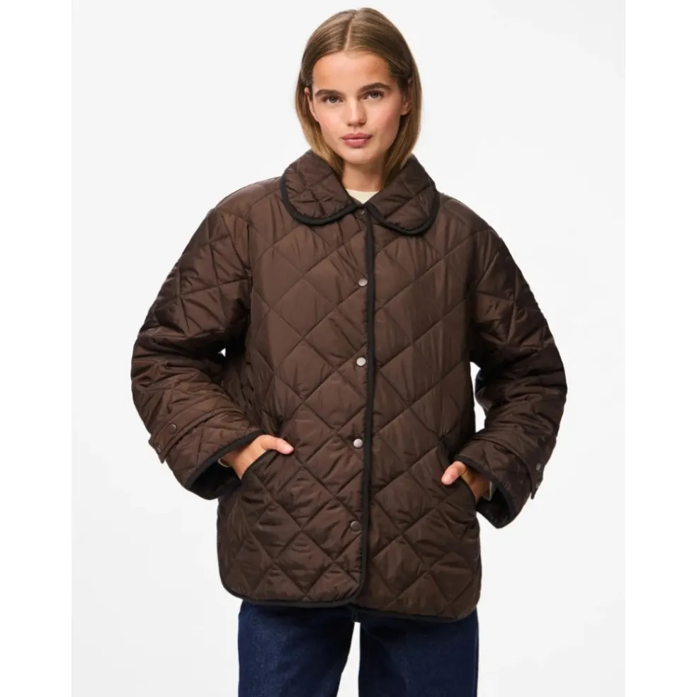 Quilted jakke fra Pieces. Kort model med knapper. Perfekt efterårsjakke.