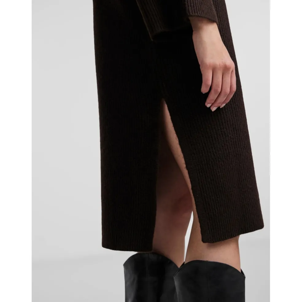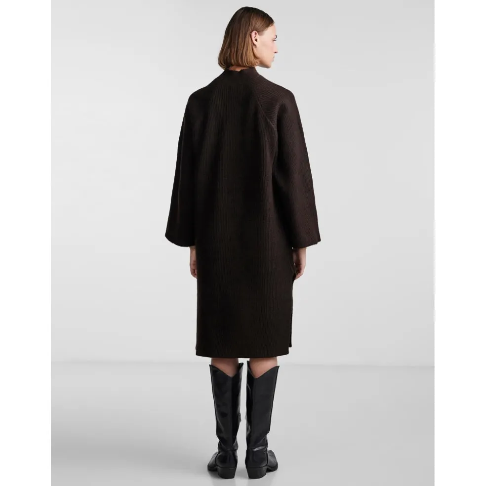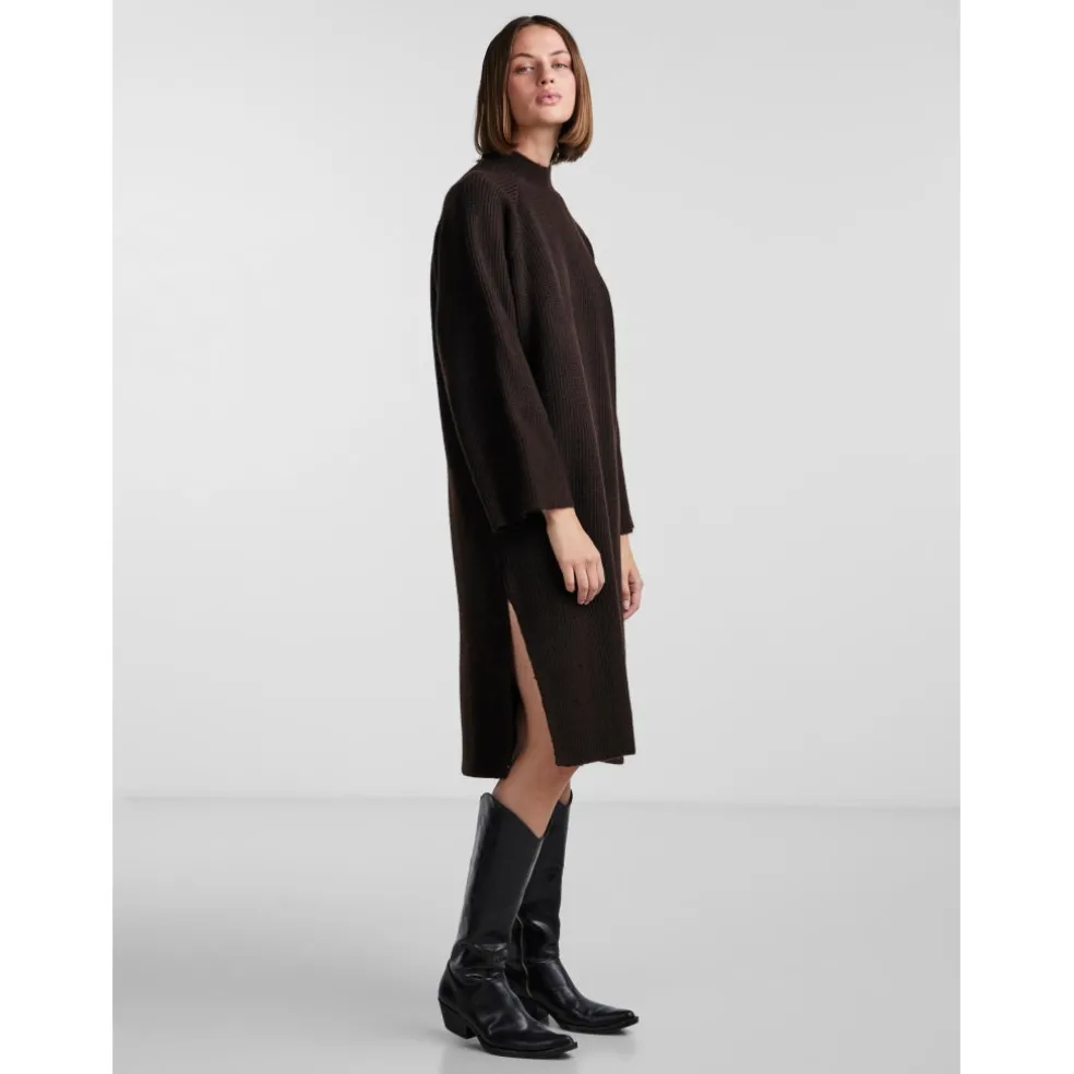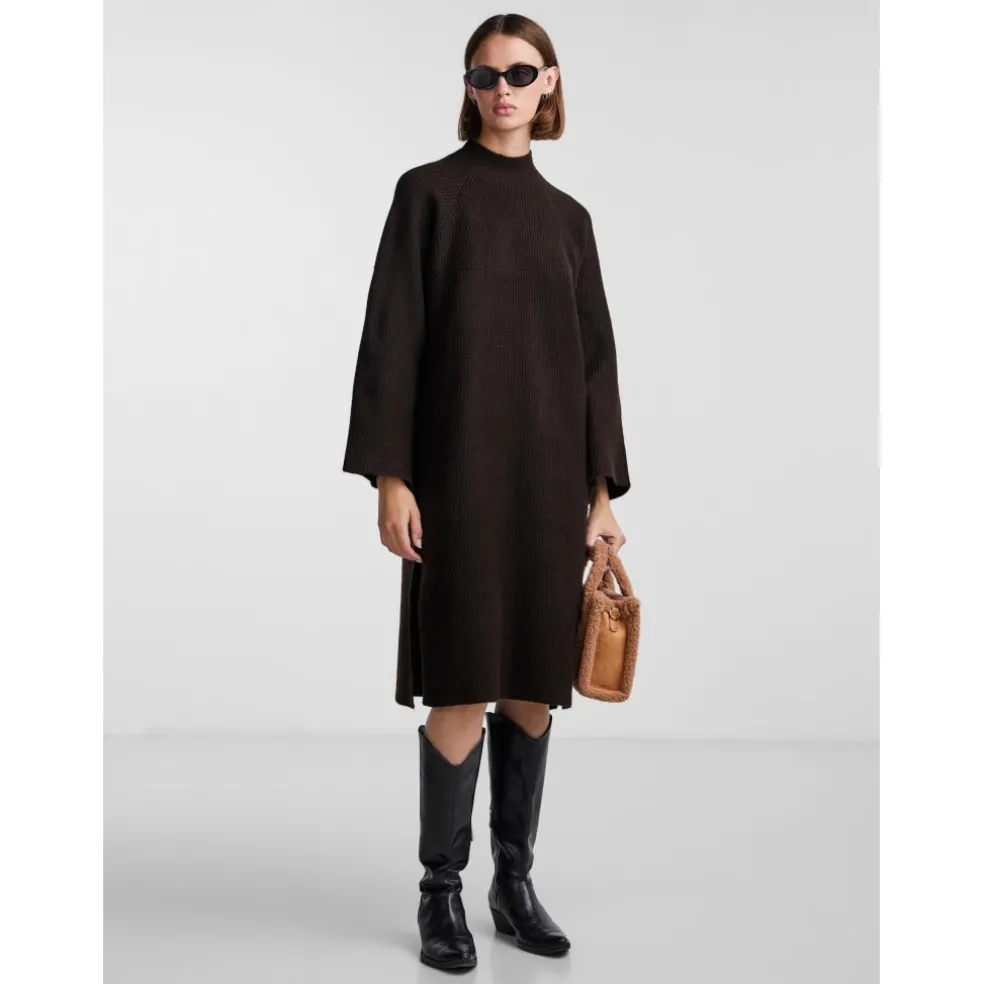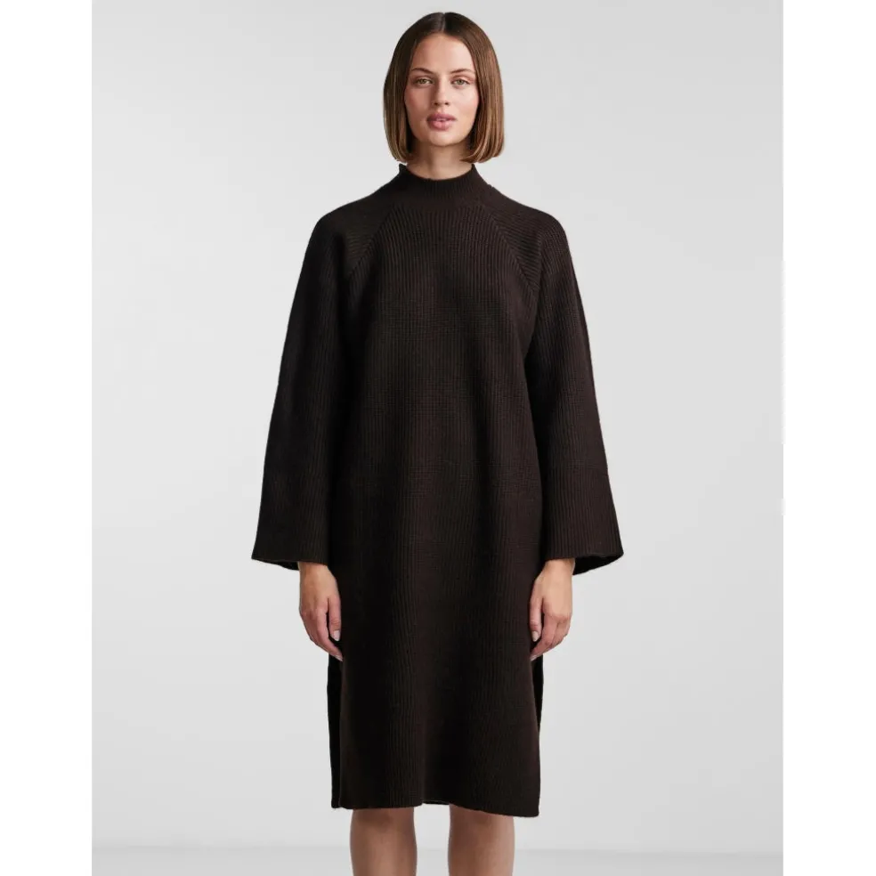 Lækker strikkjole med vidde ærmer og slids i siderne.