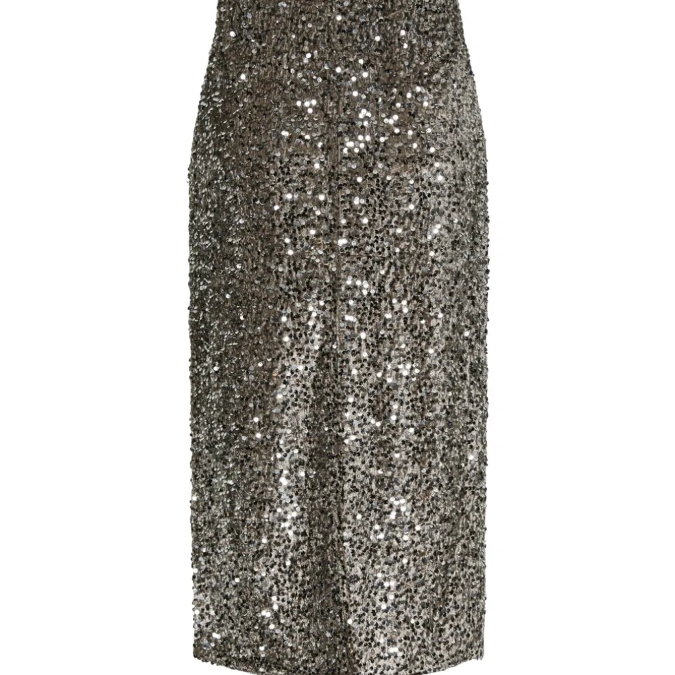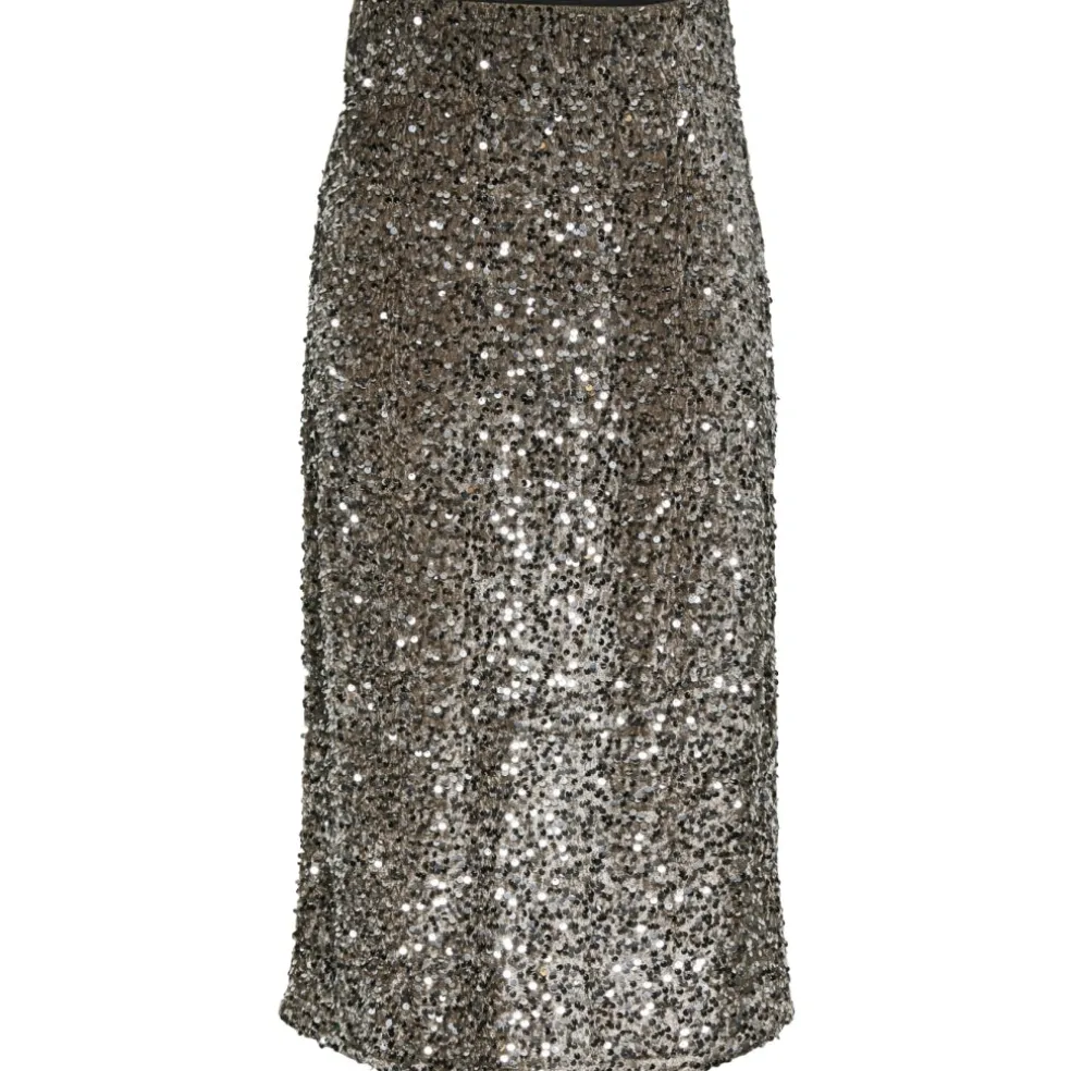 Smuk pailletnederdel med slids fra Pieces. Nederdelen kan styles med top fra samme serie for et komplet glitterlook.