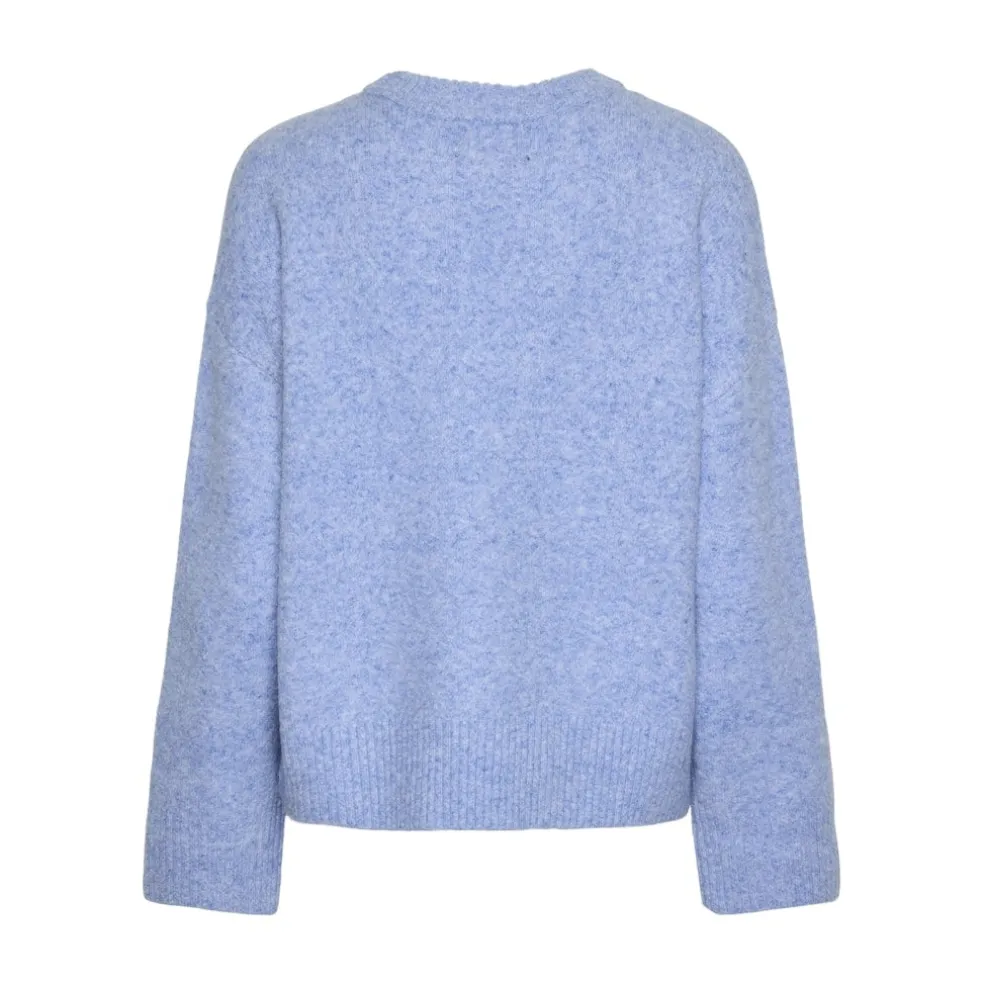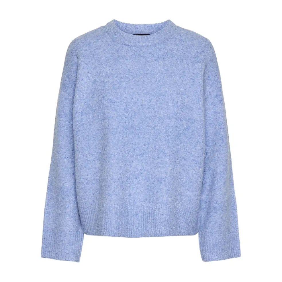 Lækker blød striktrøje fra Pieces. Strikken er normal i størrelsen, men for et mere oversize look bør man tage en størrelse større.