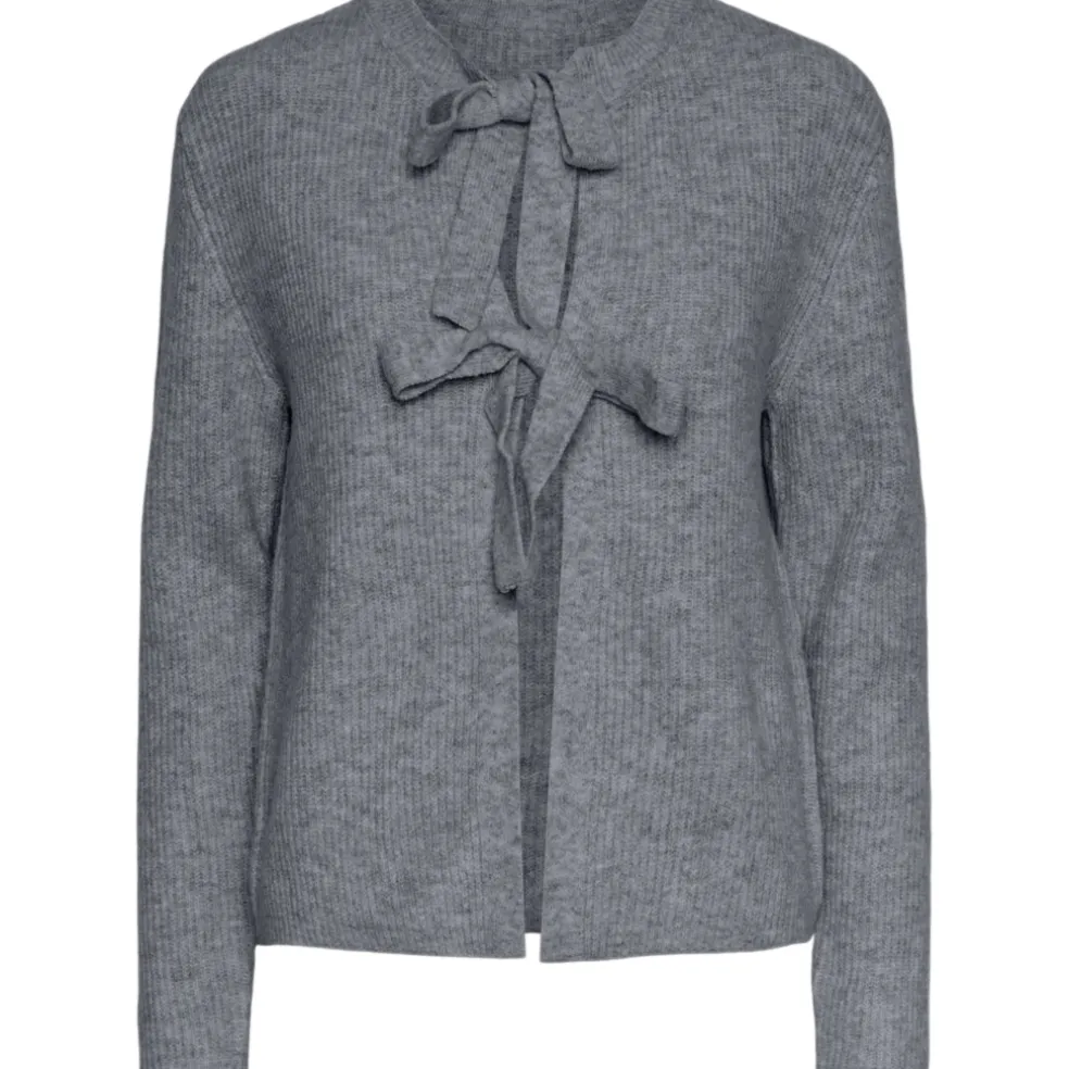 Smuk, blød striktrøje med bindebånd. Trøjen kan vendes om, så båndene sidder på ryggen. Super trendy og nem at style.