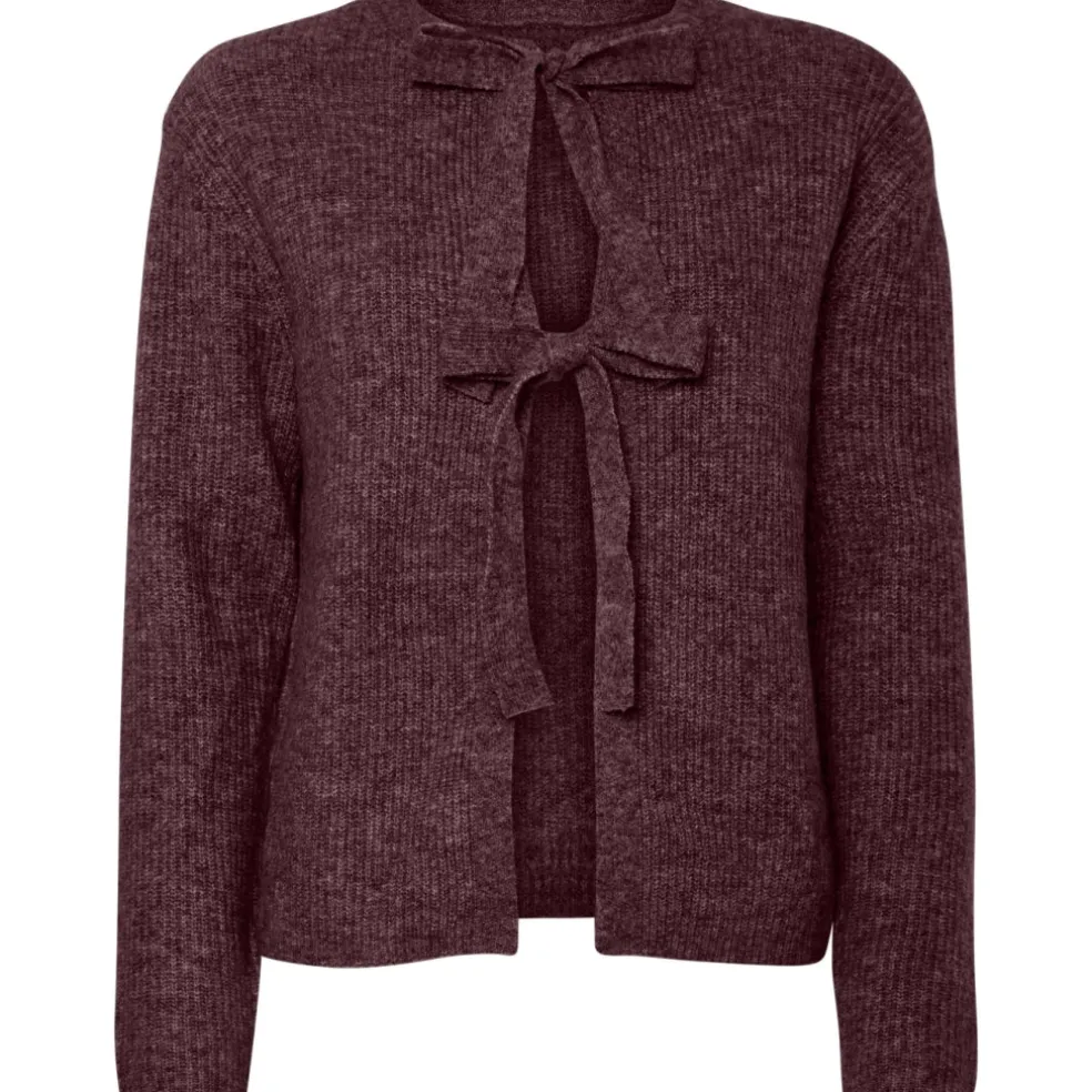 Smuk, blød striktrøje med bindebånd. Trøjen kan vendes om, så båndene sidder på ryggen. Super trendy og nem at style.