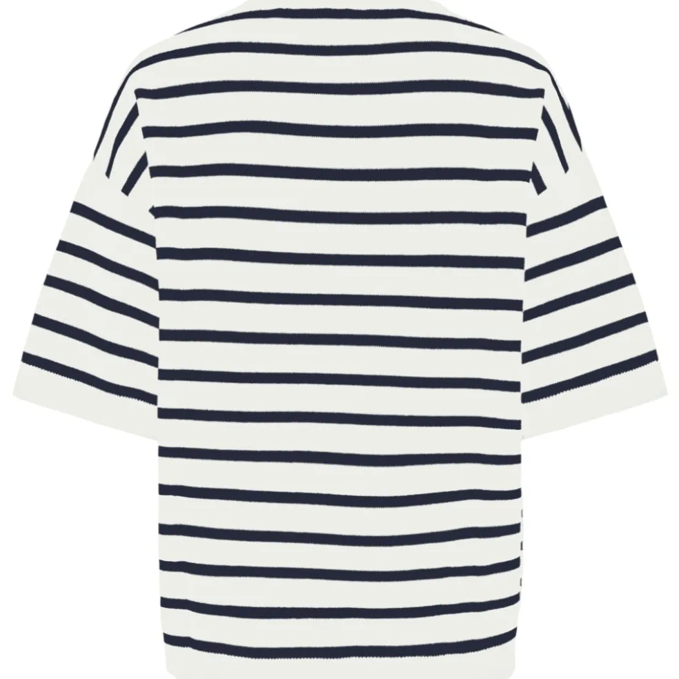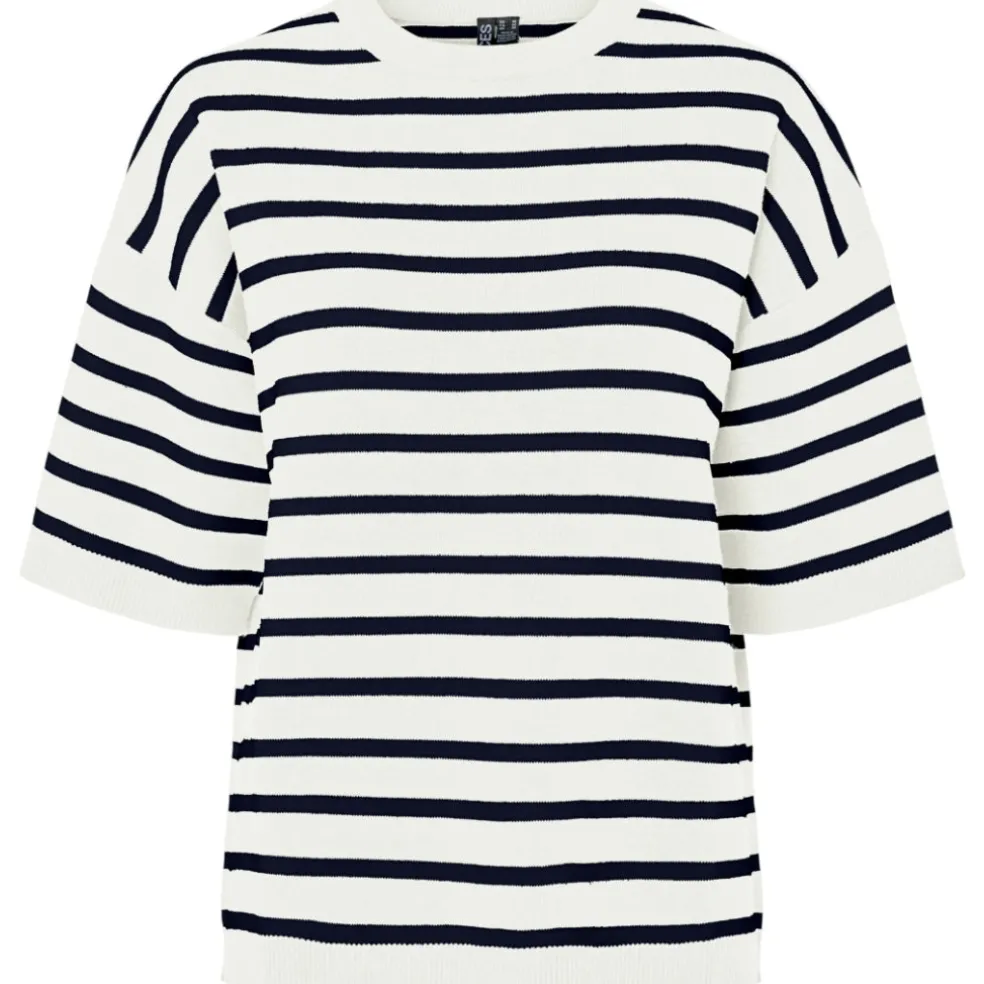 Fineste stribede strik t-shirt fra Pieces. Strikken er super klassisk, og den passer til hvad som helst i klædeskabet. Brug den både til jeans og sneakers eller en nederdel og ballerinaer.