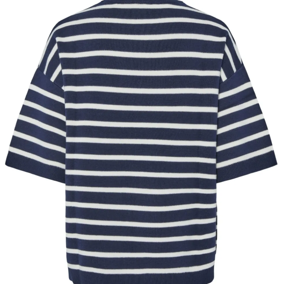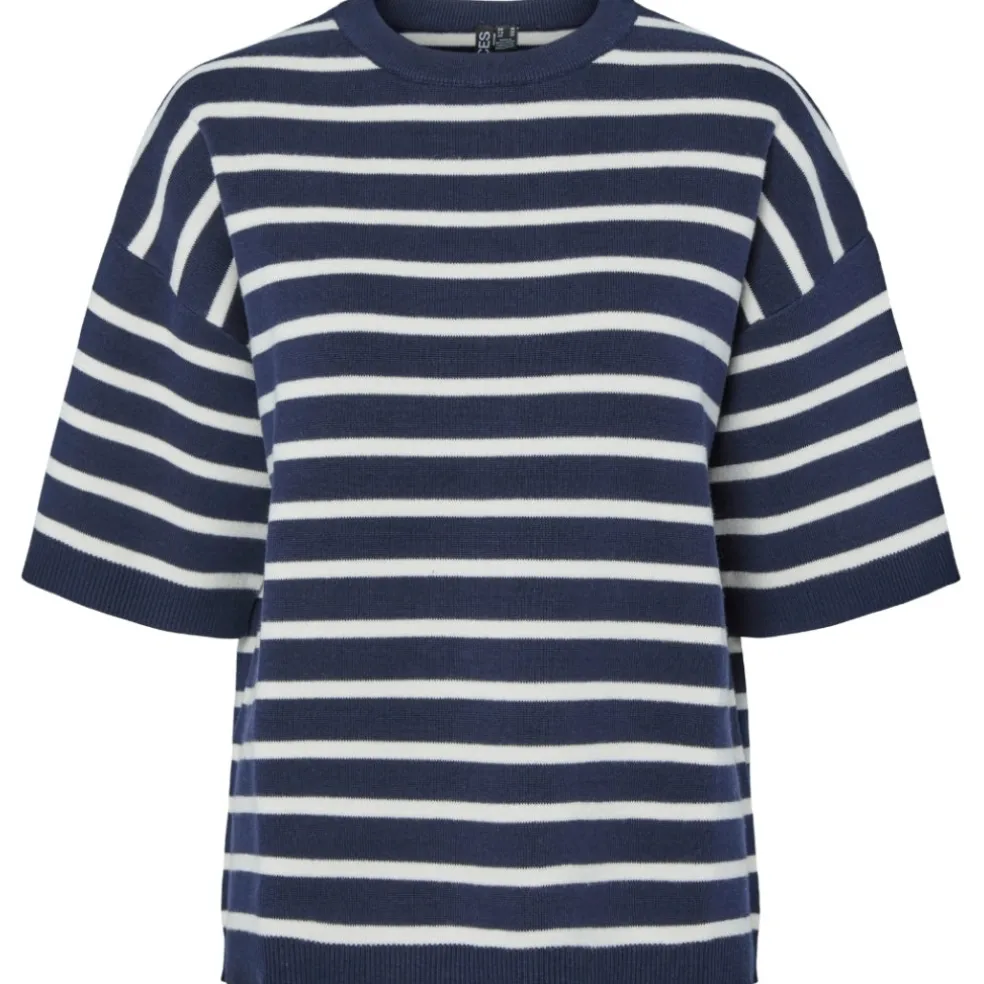 Fineste stribede strik t-shirt fra Pieces. Strikken er super klassisk, og den passer til hvad som helst i klædeskabet. Brug den både til jeans og sneakers eller en nederdel og ballerinaer.
