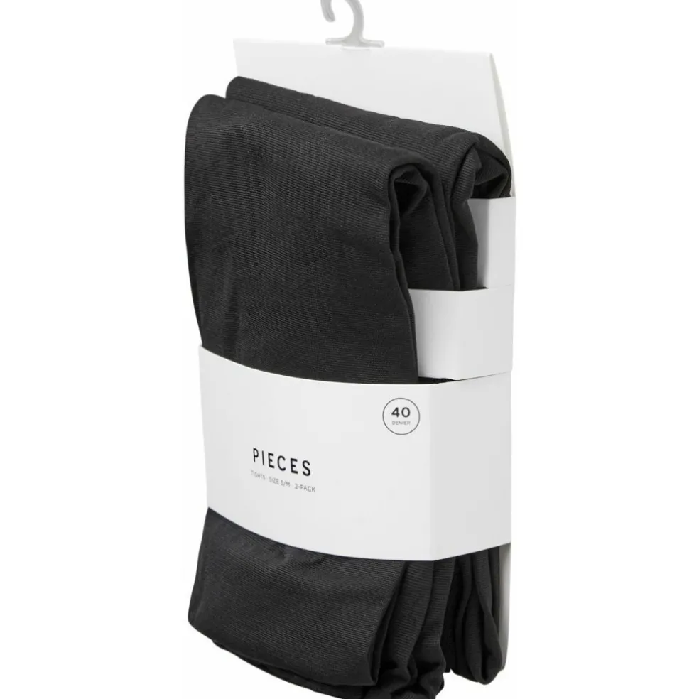 2-pack strømpebukser fra Pieces. Strømpebukserne er i 40 denier og er størrelsessvarende. Hvis du ligger mellem to størrelser, anbefaler vi at du tager den største.