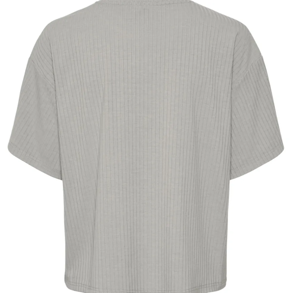 Ribbet basic t-shirt fra Pieces. t-shirten kan styles med shorts eller nederdel og sandaler.