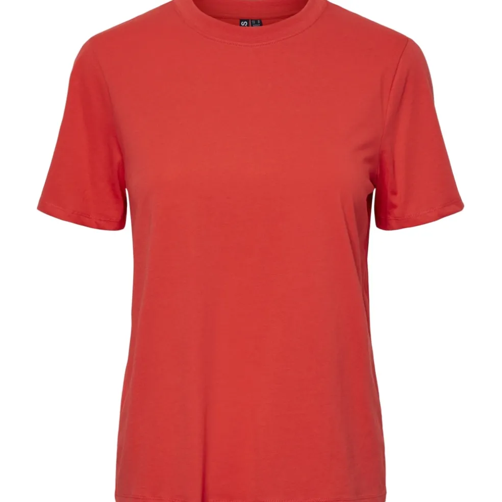 Basic t-shirt fra Pieces i en dejlig blød bomuldskvalitet, der sikrer både komfort og stil hele dagen.