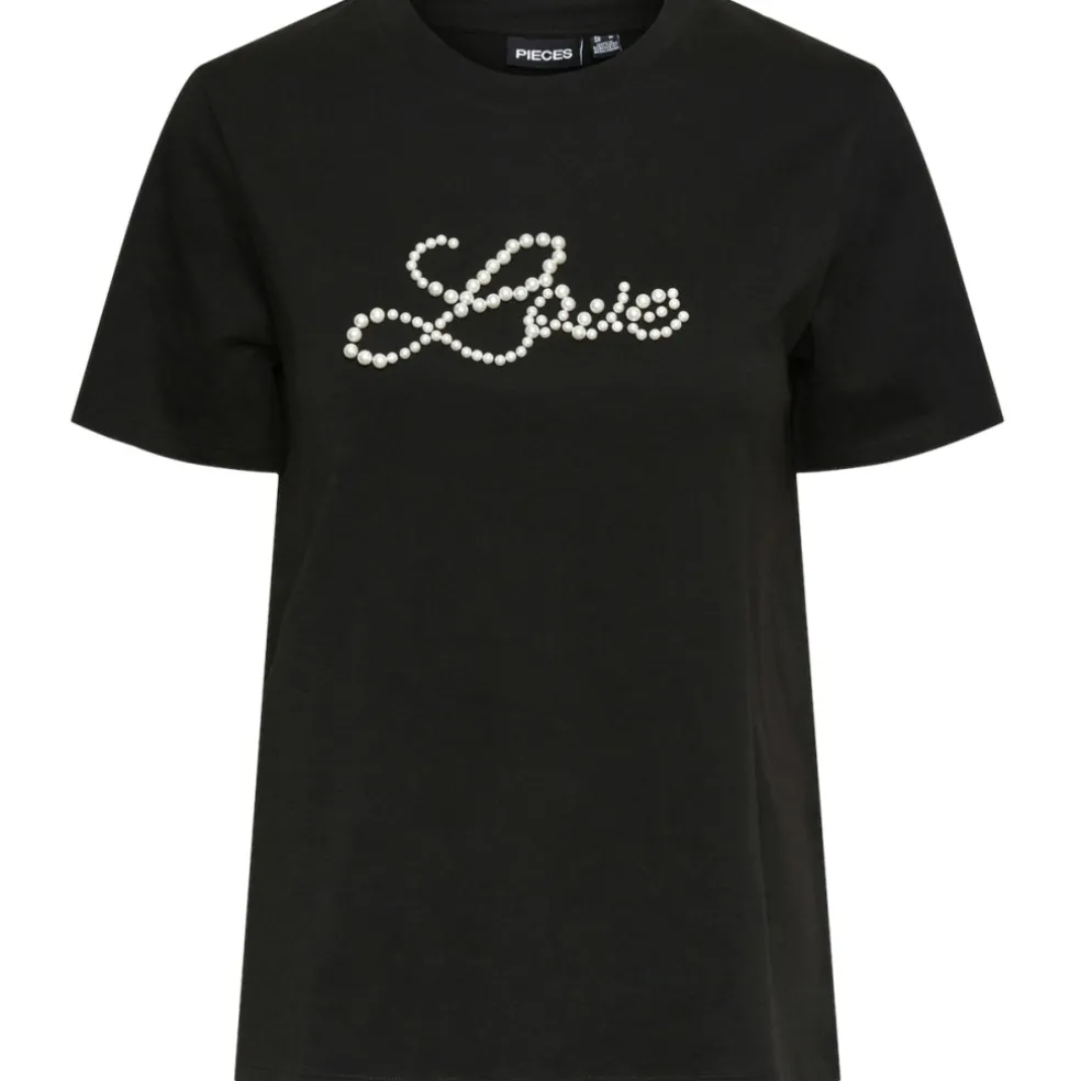T-shirt med perledetaljer fra Pieces. Super feminin og alsidig.